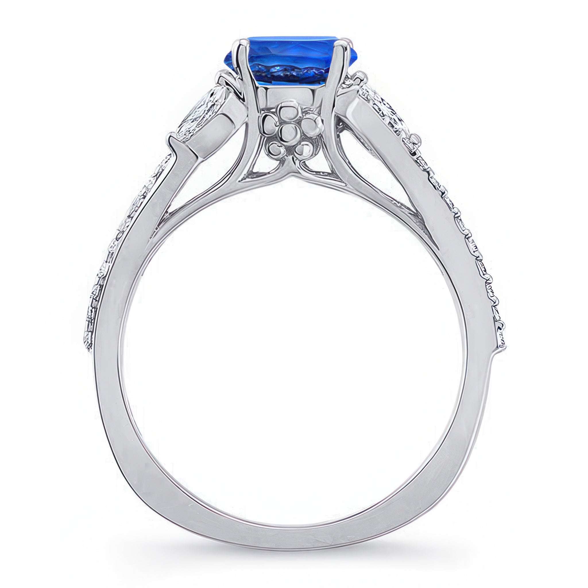 Blue Sapphire And Diamond Leaf Engagement Ring