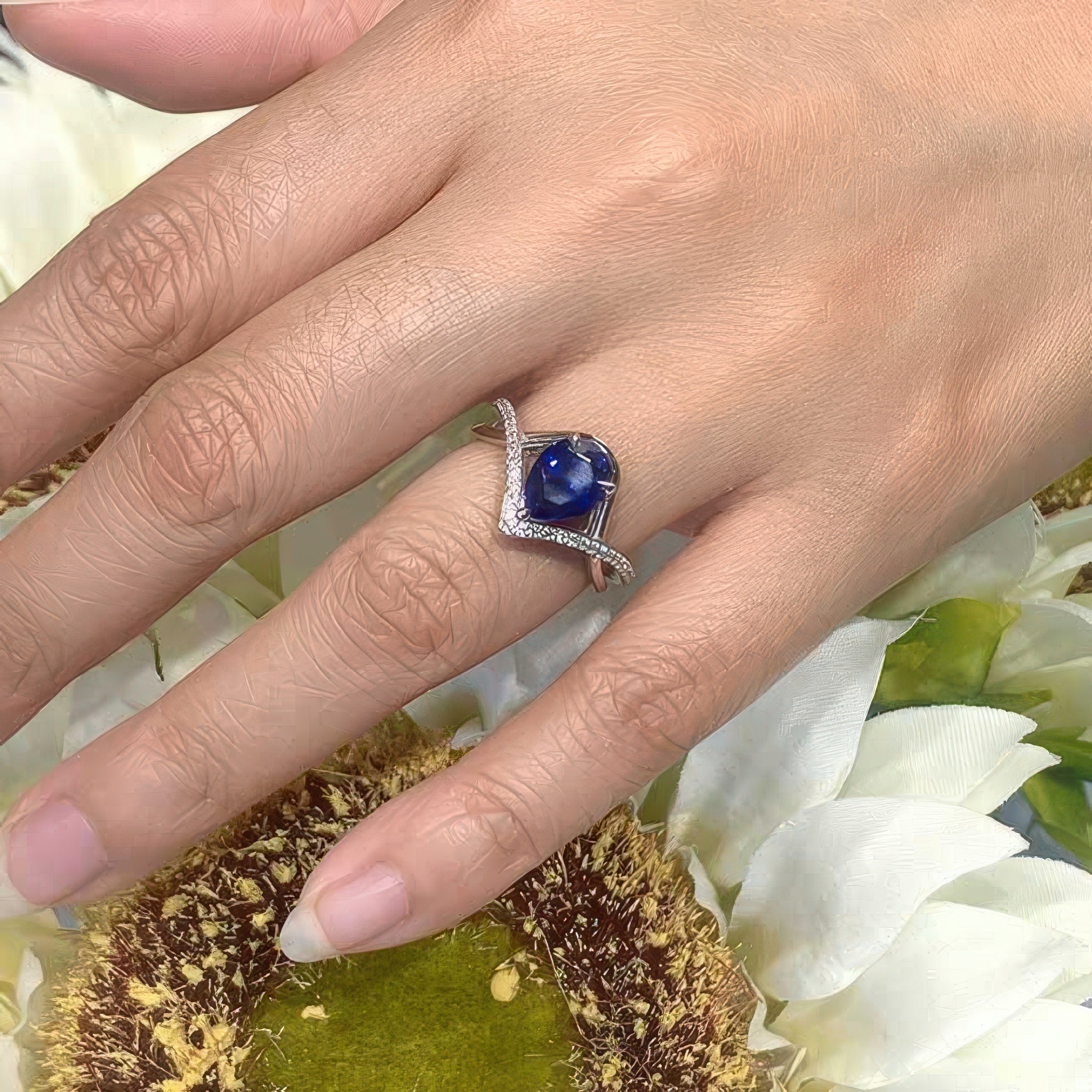 Unique Pear Shaped Blue Sapphire And Diamond Ring