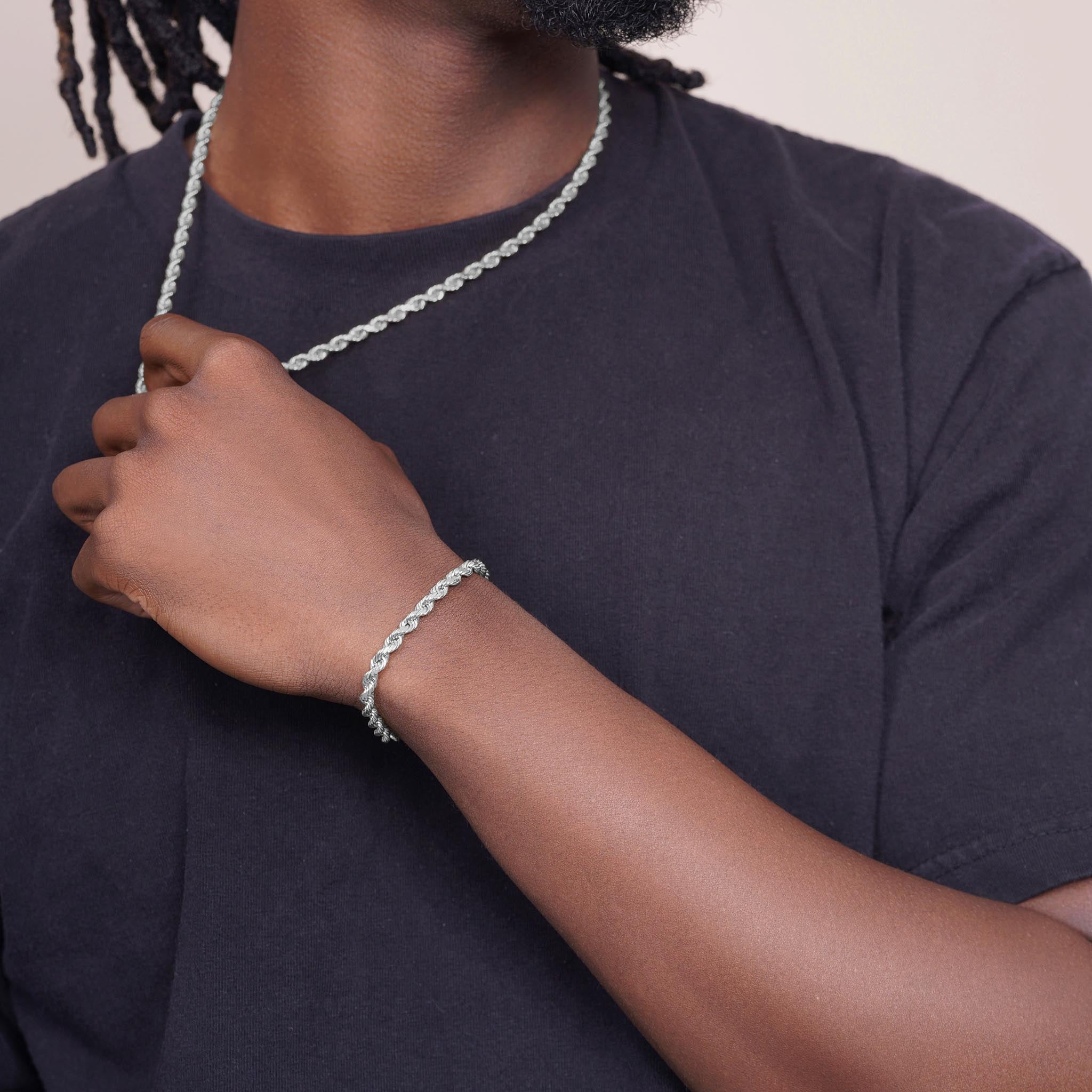 A staple you’ll reach for every day. This men’s rope bracelet is made from genuine 925 sterling silver and finished to a bright, mirror-like polish that catches the light from every angle. The twisted rope links give it texture and depth—clean enough for daily wear, sharp enough to elevate a simple tee or a button-down. Wear it solo for a refined, classic hit of shine or stack it with a watch for a more confident look. Finished with a secure lobster clasp so it goes on easily and stays locked in.