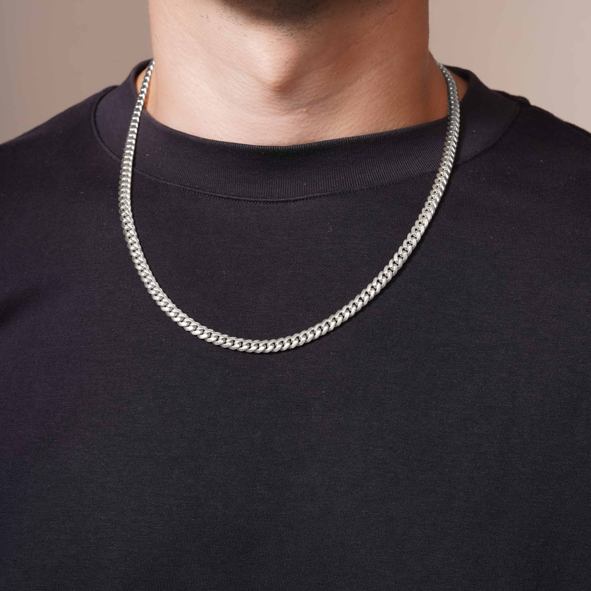 Elevate your style with this Men's Silver Miami Cuban Chain, crafted for durability and timeless appeal. Featuring tightly interlocked links with a sleek silver finish, this chain offers both strength and a polished look suitable for any occasion. Its balanced weight ensures comfort for all-day wear, while the classic design makes it a versatile accessory that complements both casual and formal outfits. Perfect for those seeking a blend of sophistication and everyday practicality.