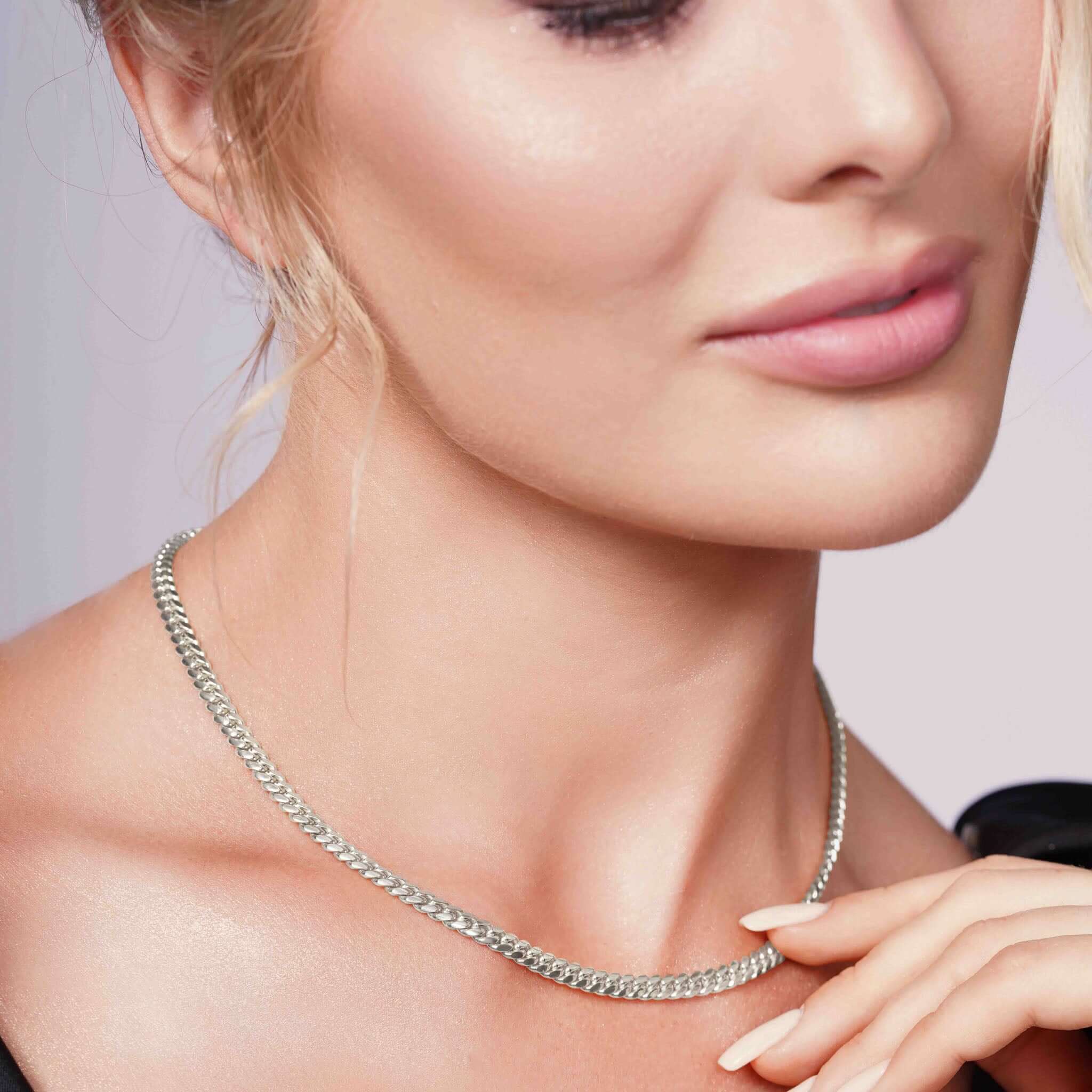 Elevate your style with this expertly crafted Silver Miami Cuban Chain designed specifically for women. Its classic interlocking links offer durability and a timeless look suitable for both everyday wear and special occasions. The polished silver finish ensures a sophisticated shine that complements any outfit, making it a versatile addition to your jewelry collection.