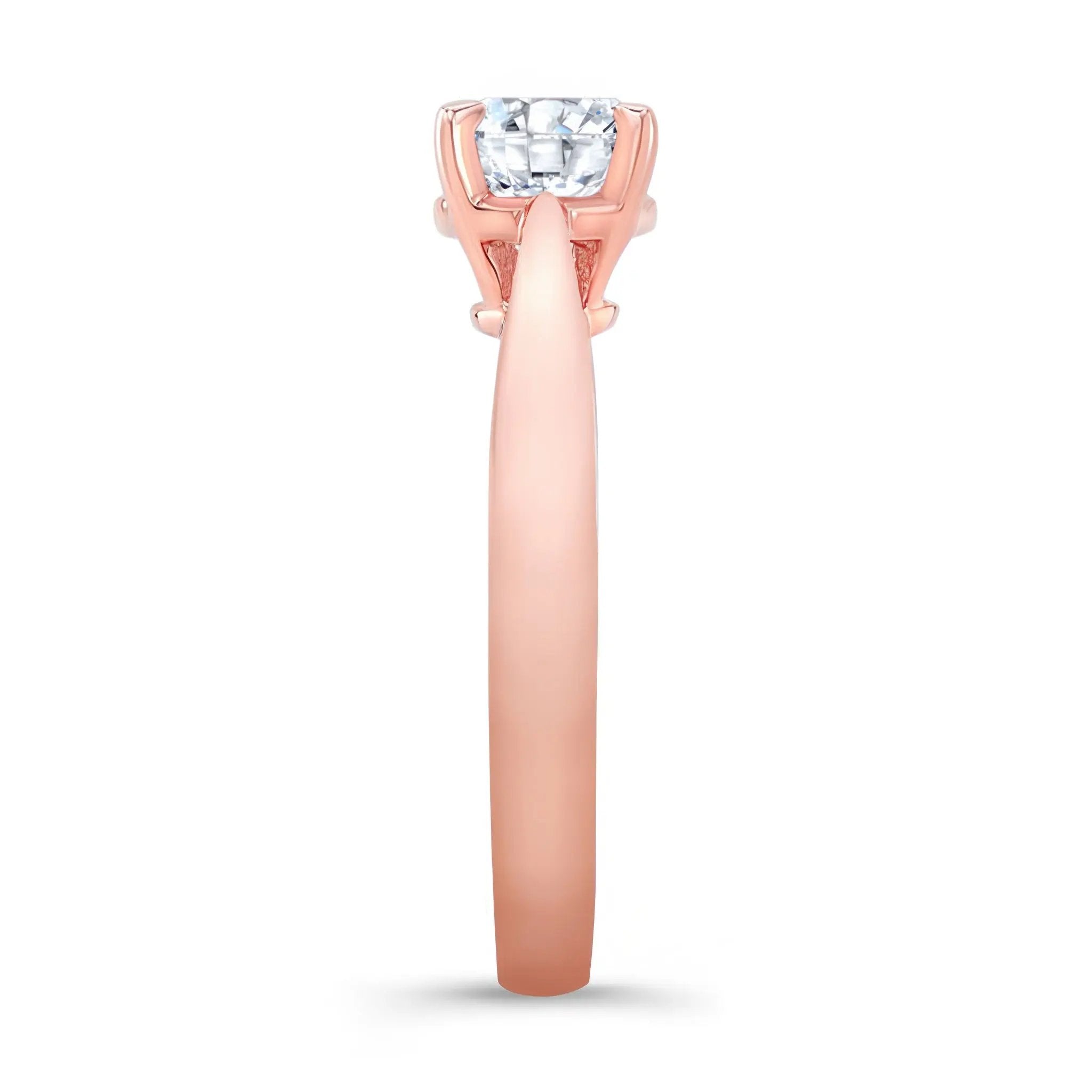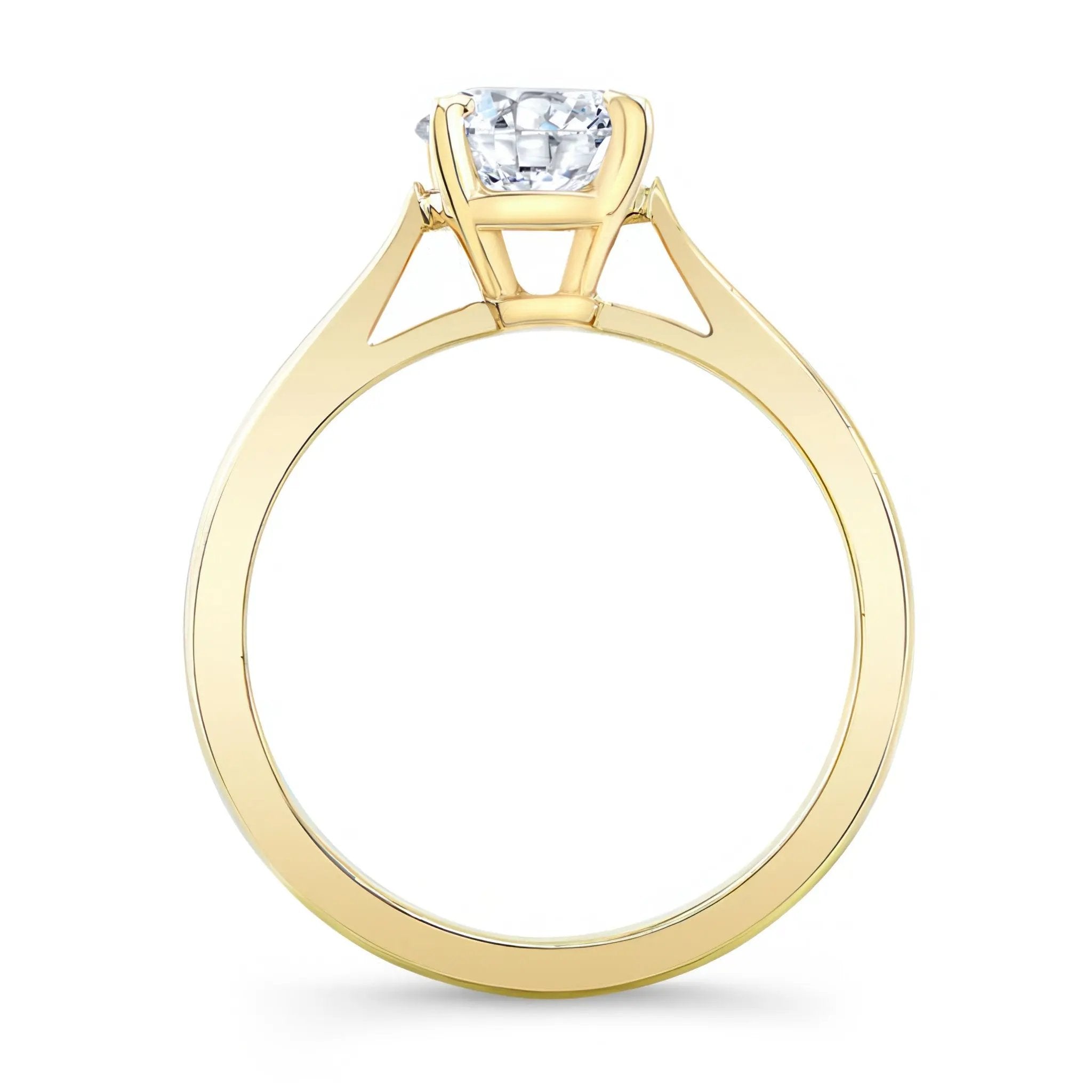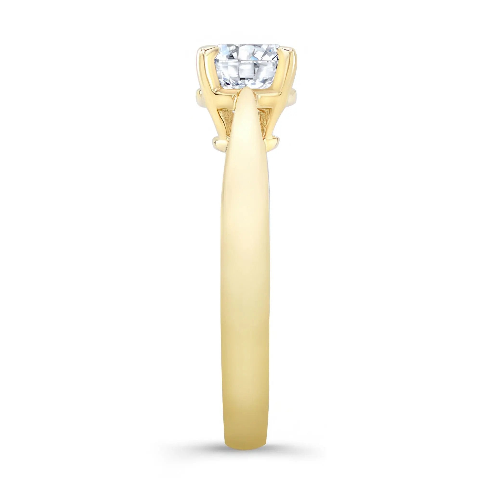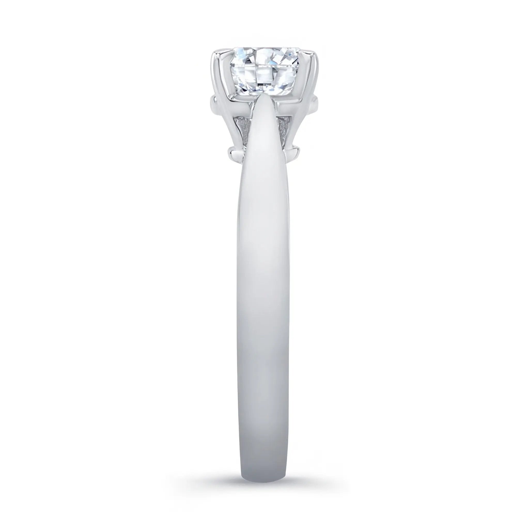 This round solitaire engagement ring features a classic design that's elevated by a delicate shank that meets the center setting, to add a dainty feminine curve.