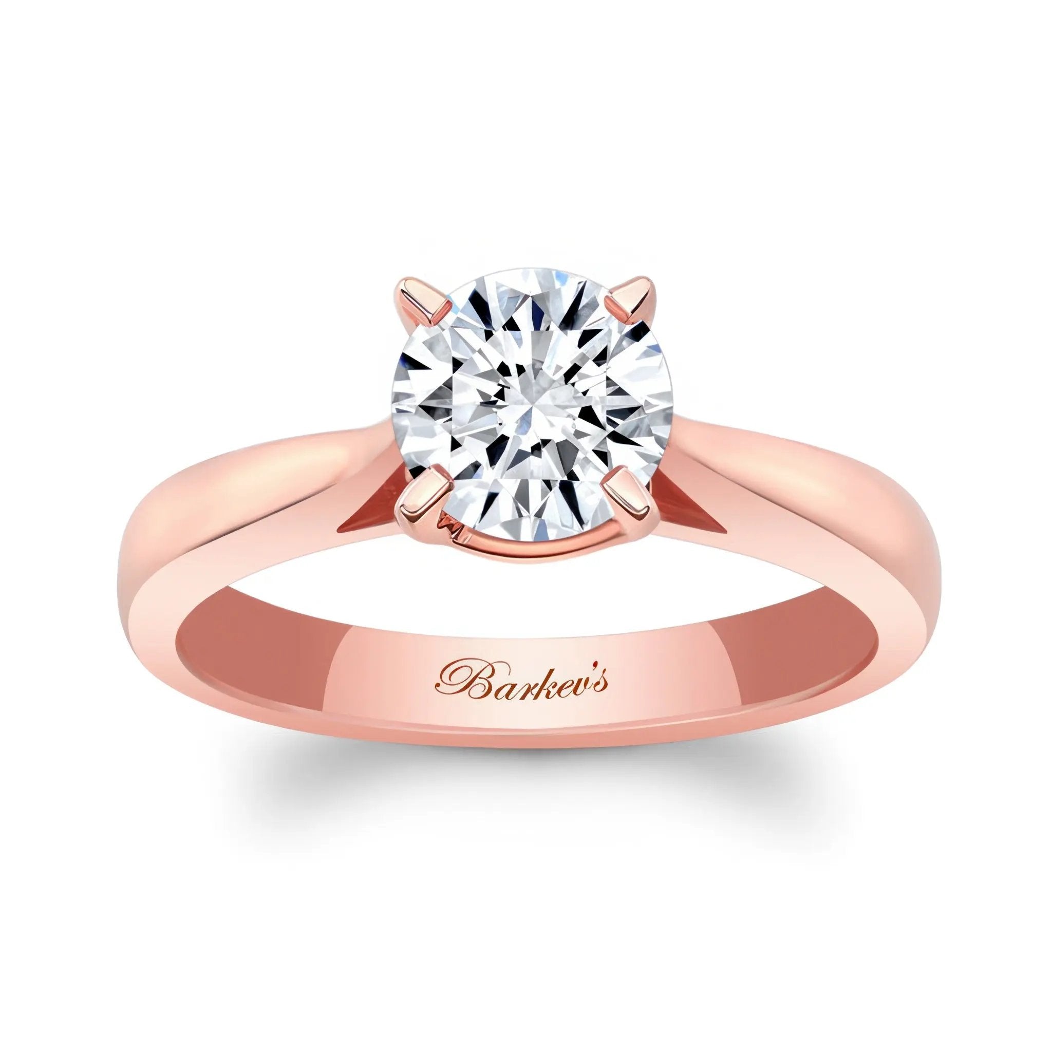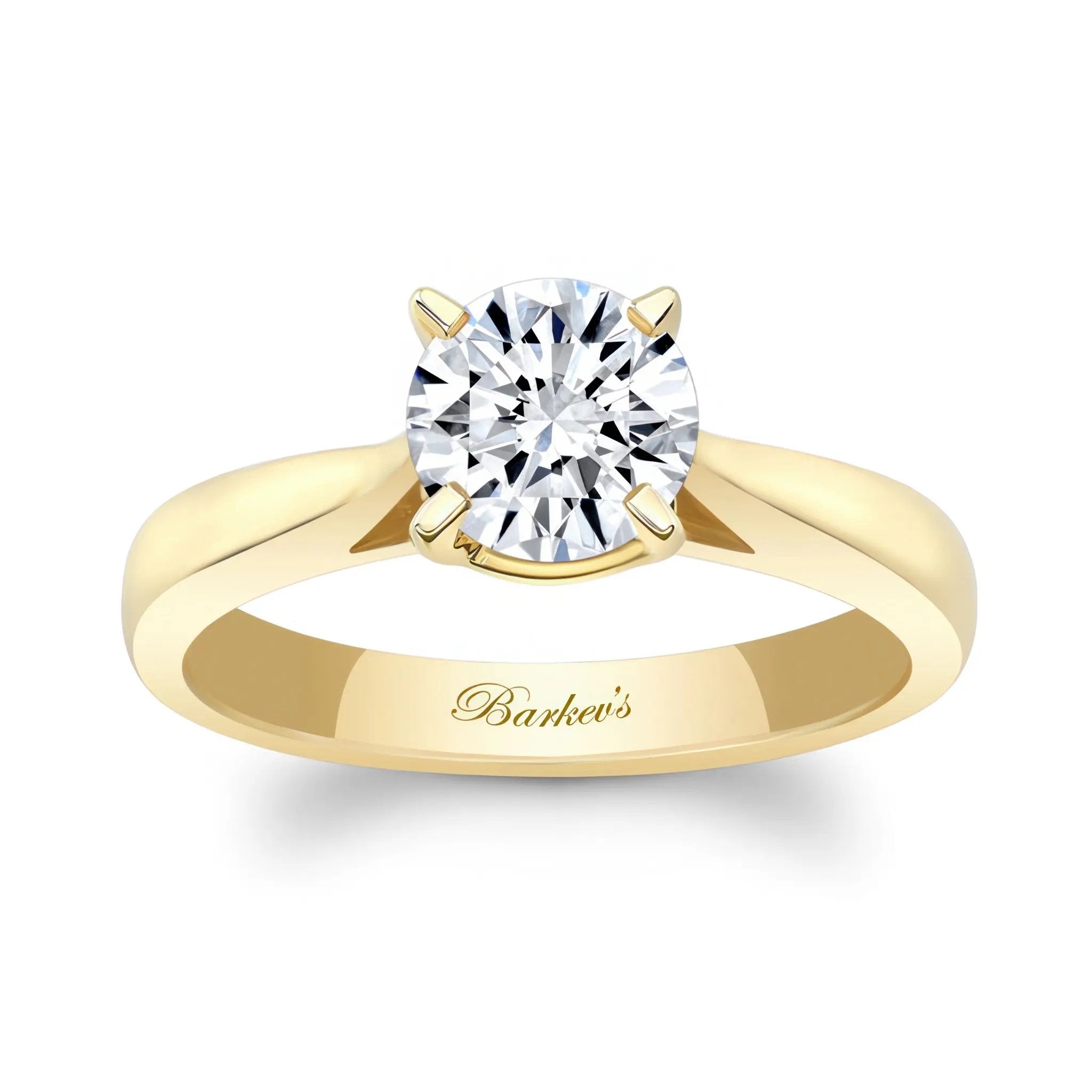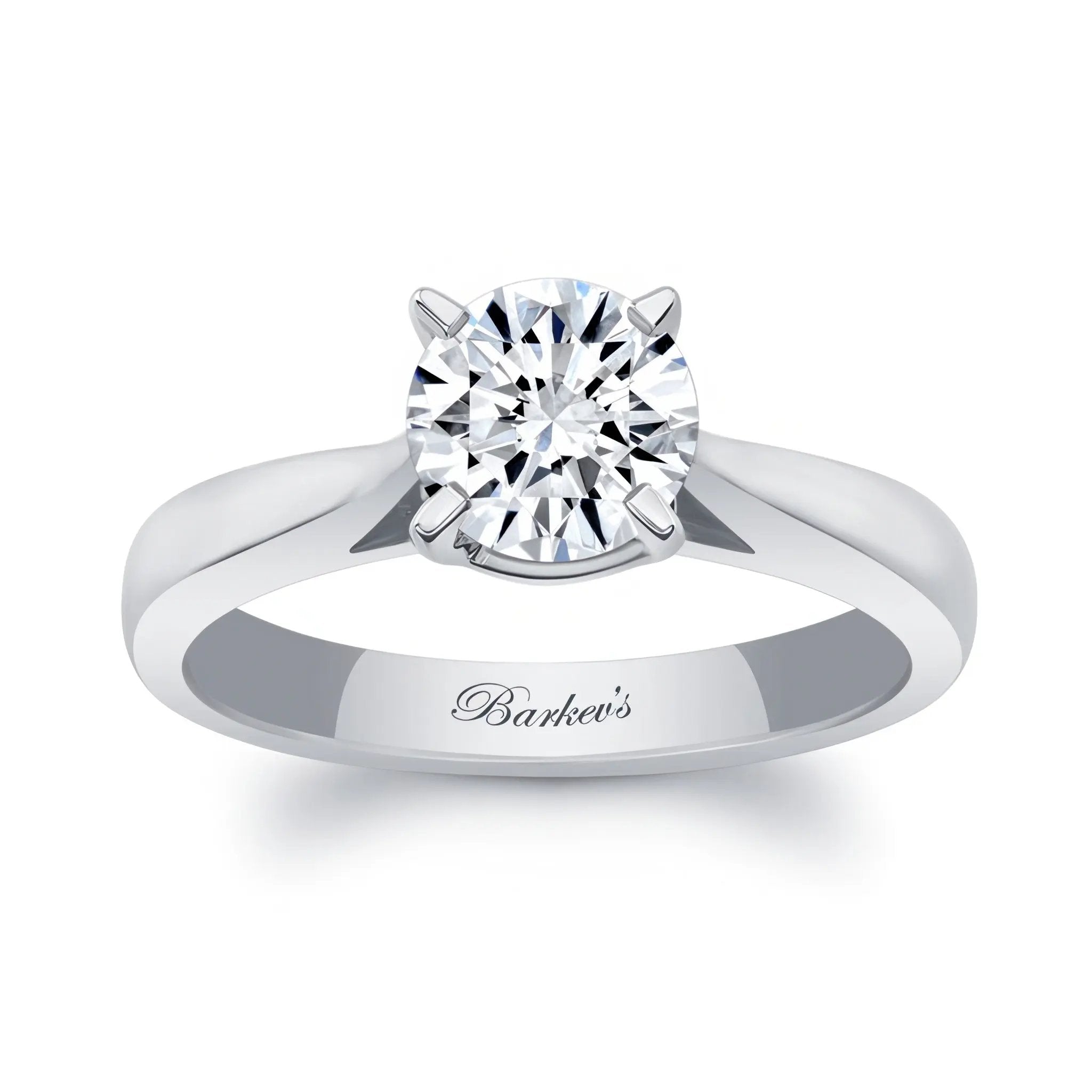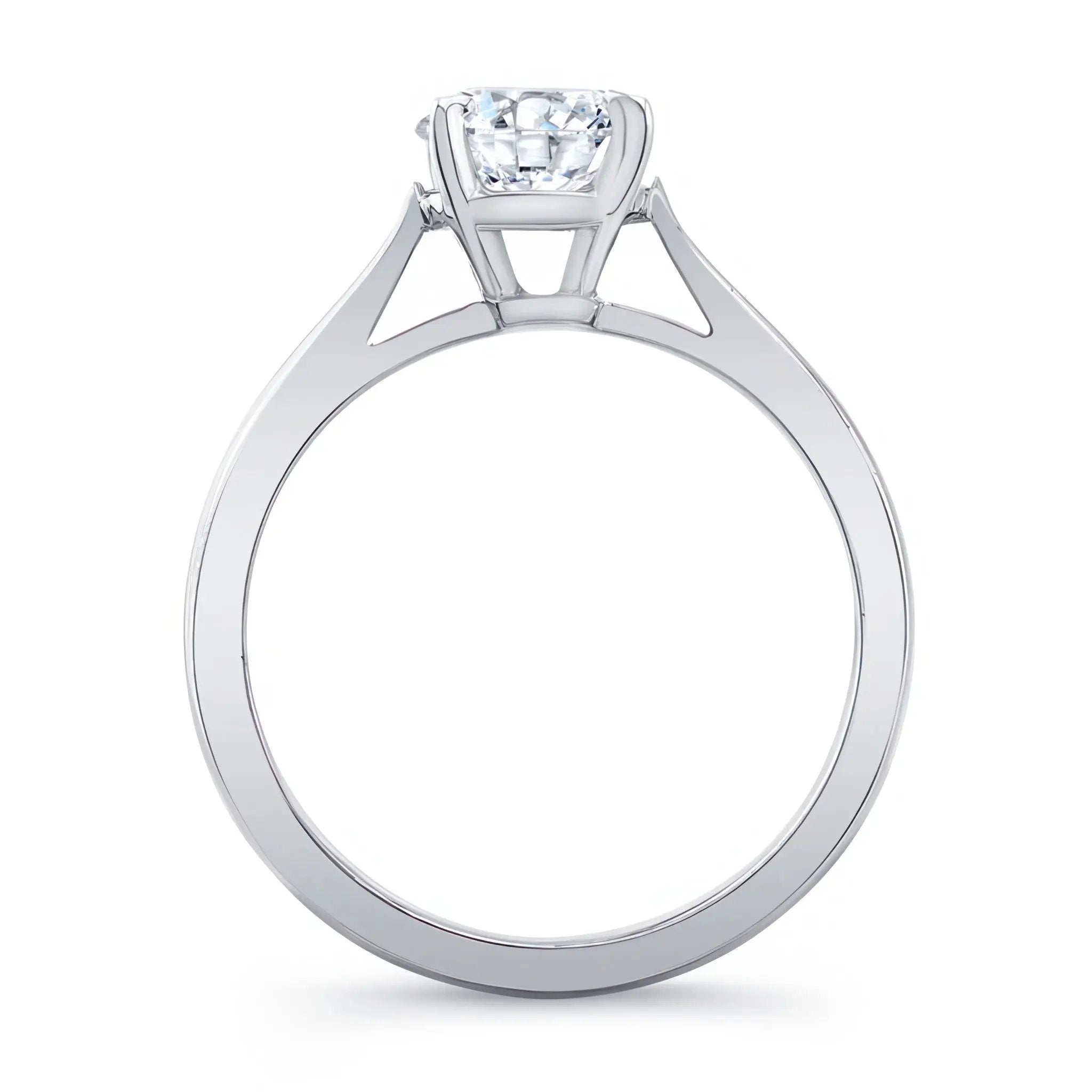 This round solitaire engagement ring features a classic design that's elevated by a delicate shank that meets the center setting, to add a dainty feminine curve.
