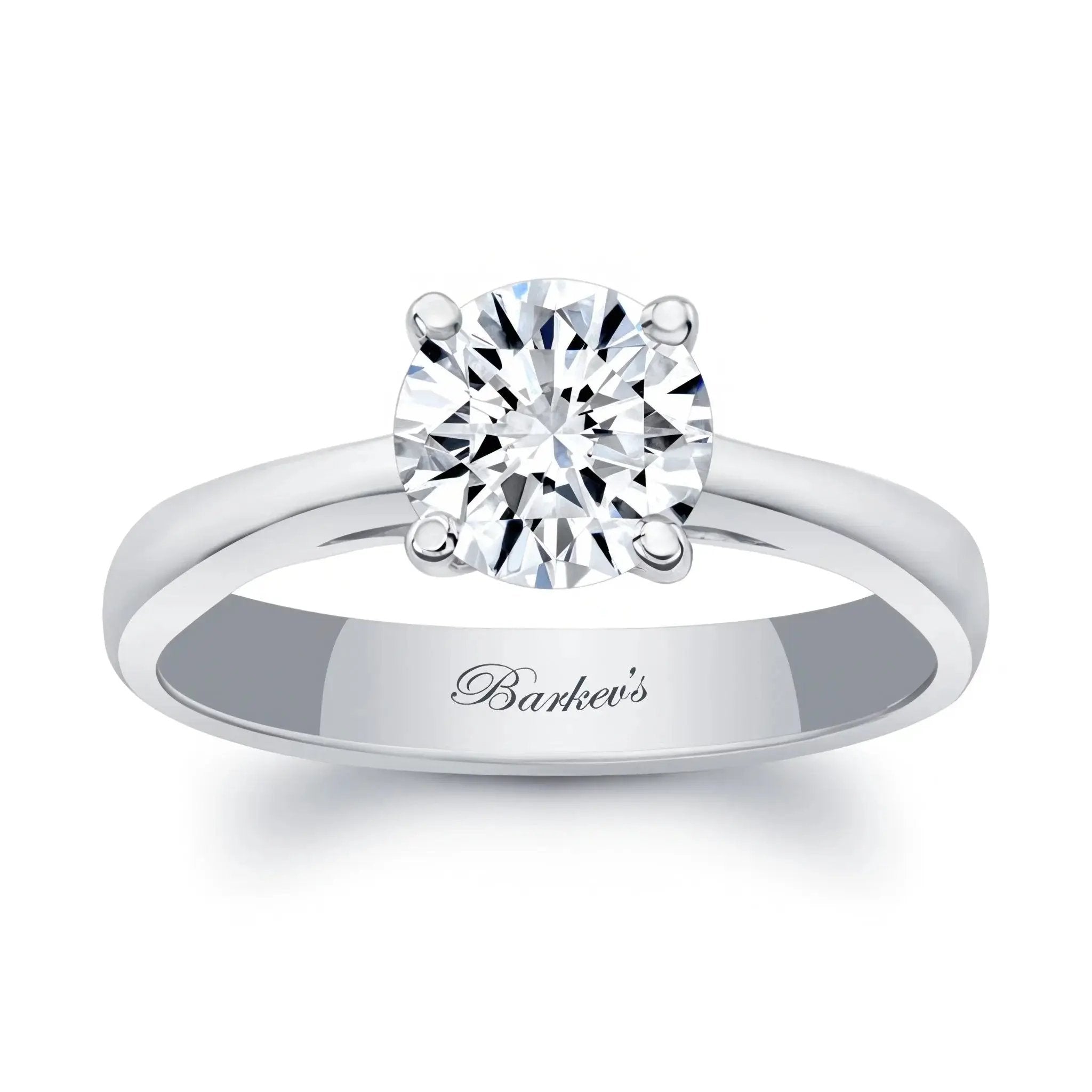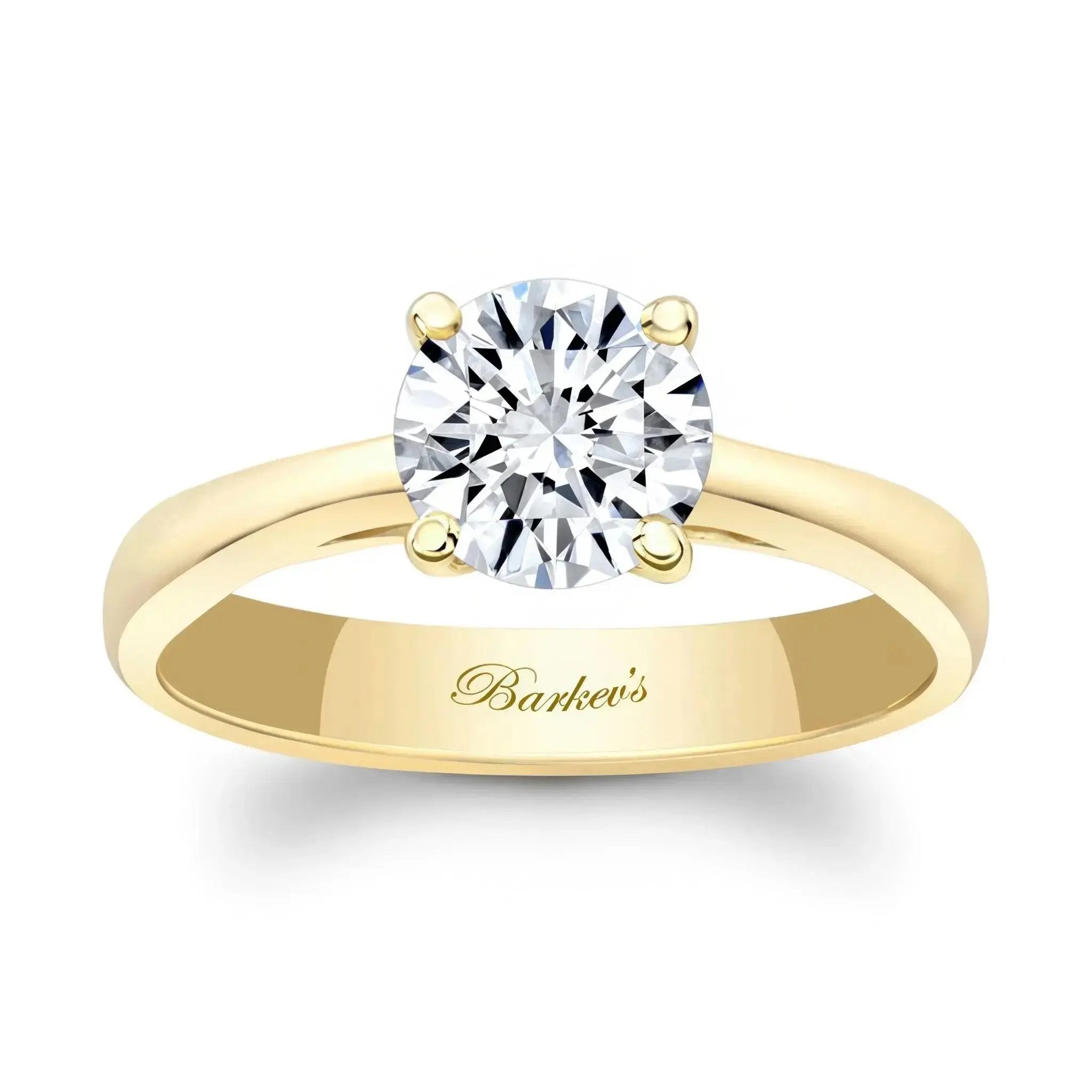 This traditional round solitaire ring sports an additional shoulder to better support the basket setting for the brilliant center stone.
