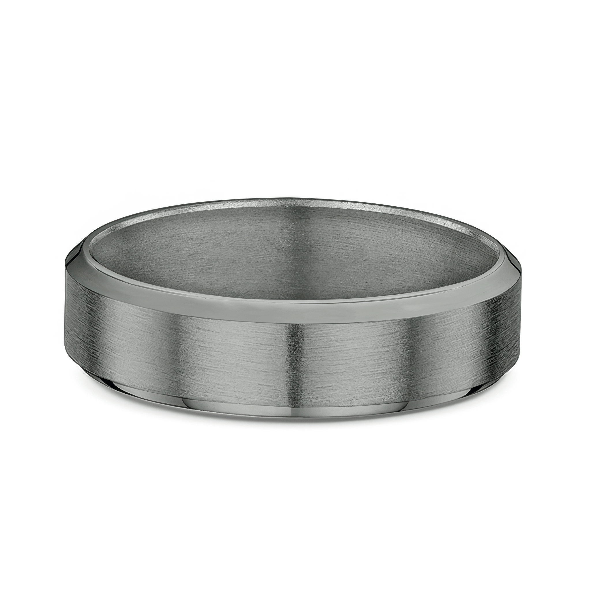 This Dora men's simple beveled edge wedding band features beautiful tantalum and a sleek beveled edge.