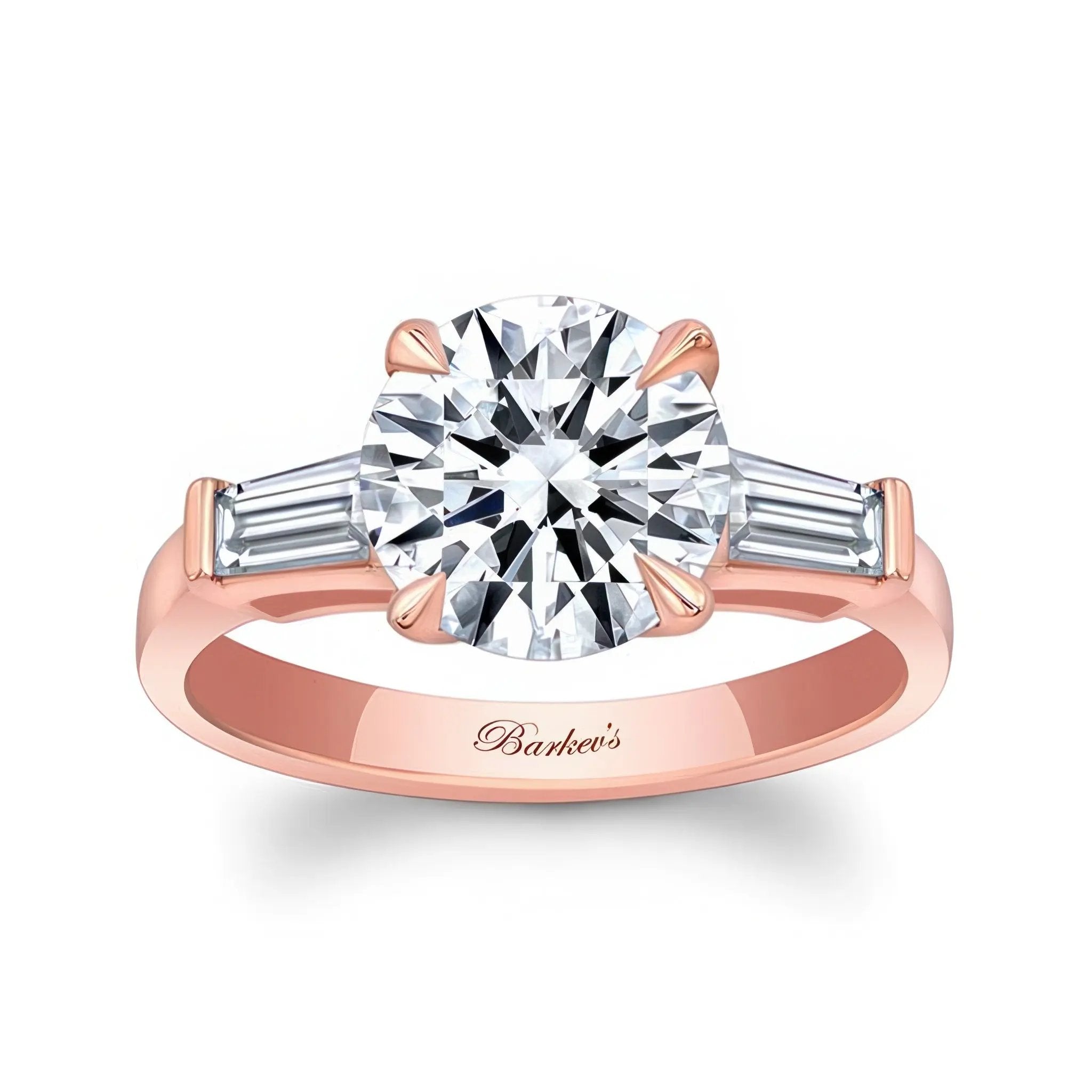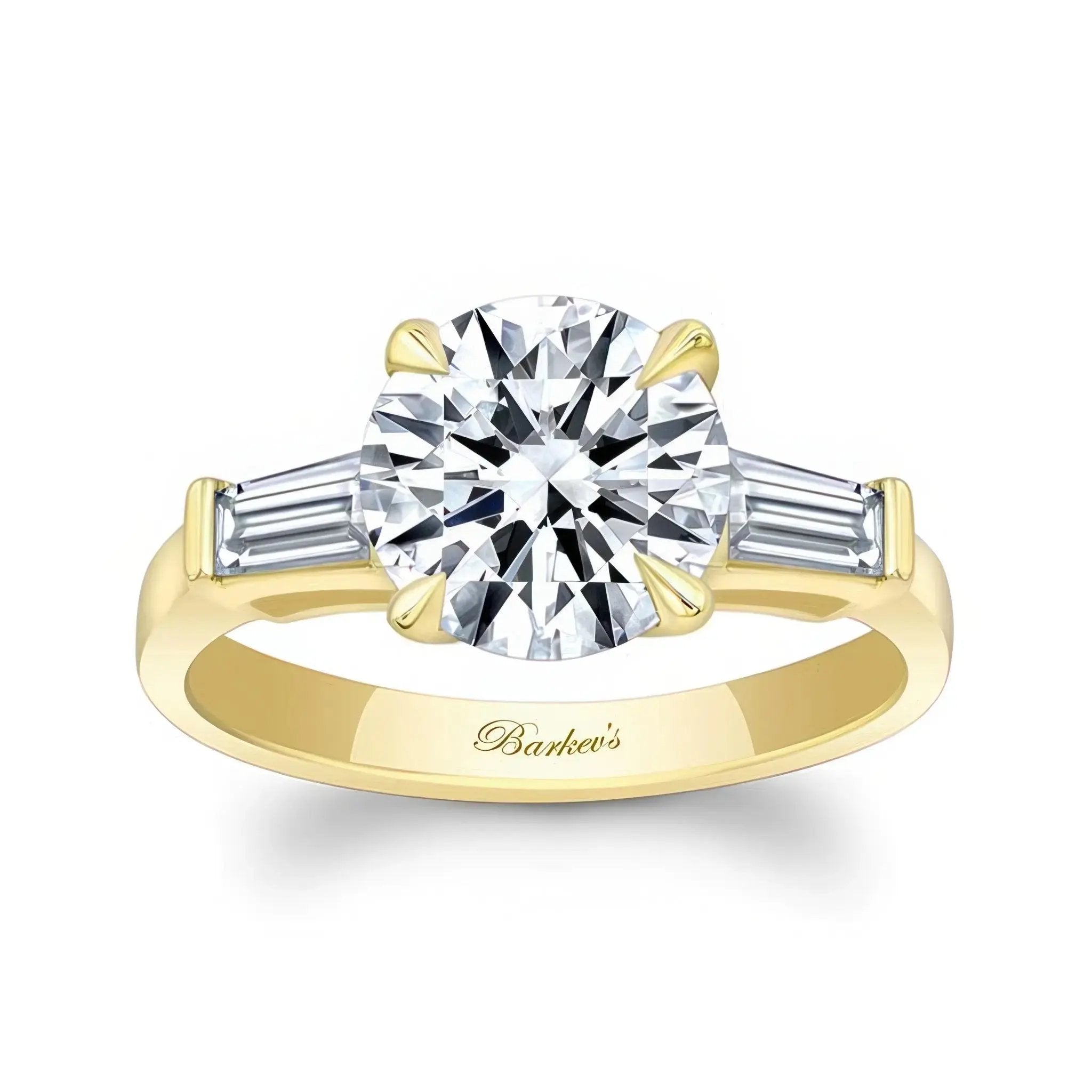 This 2 carat round diamond ring features a large prong set center with baguette diamonds on each side for a stunning look.