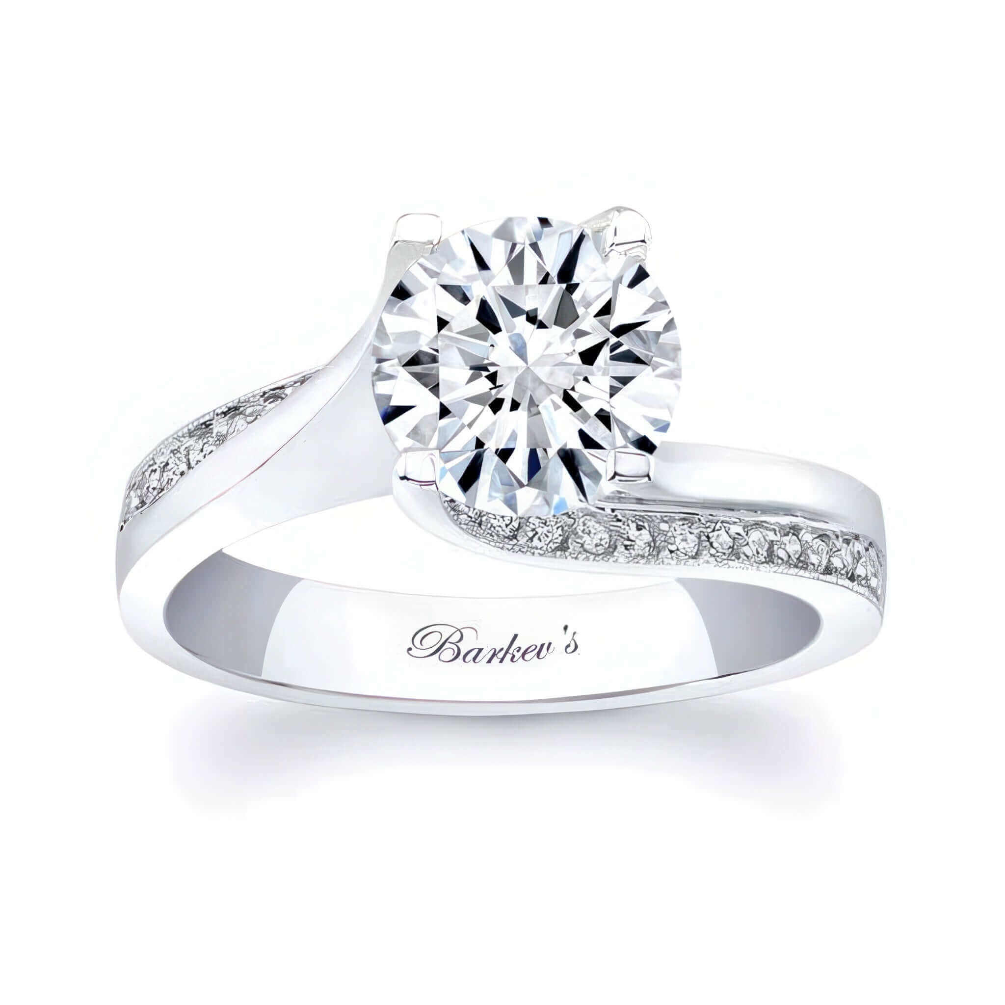This timeless 2 carat round cut moissanite ring features a 2 carat center stone with pave set diamonds on sides and milgrain detailing for a sophisticated aura.