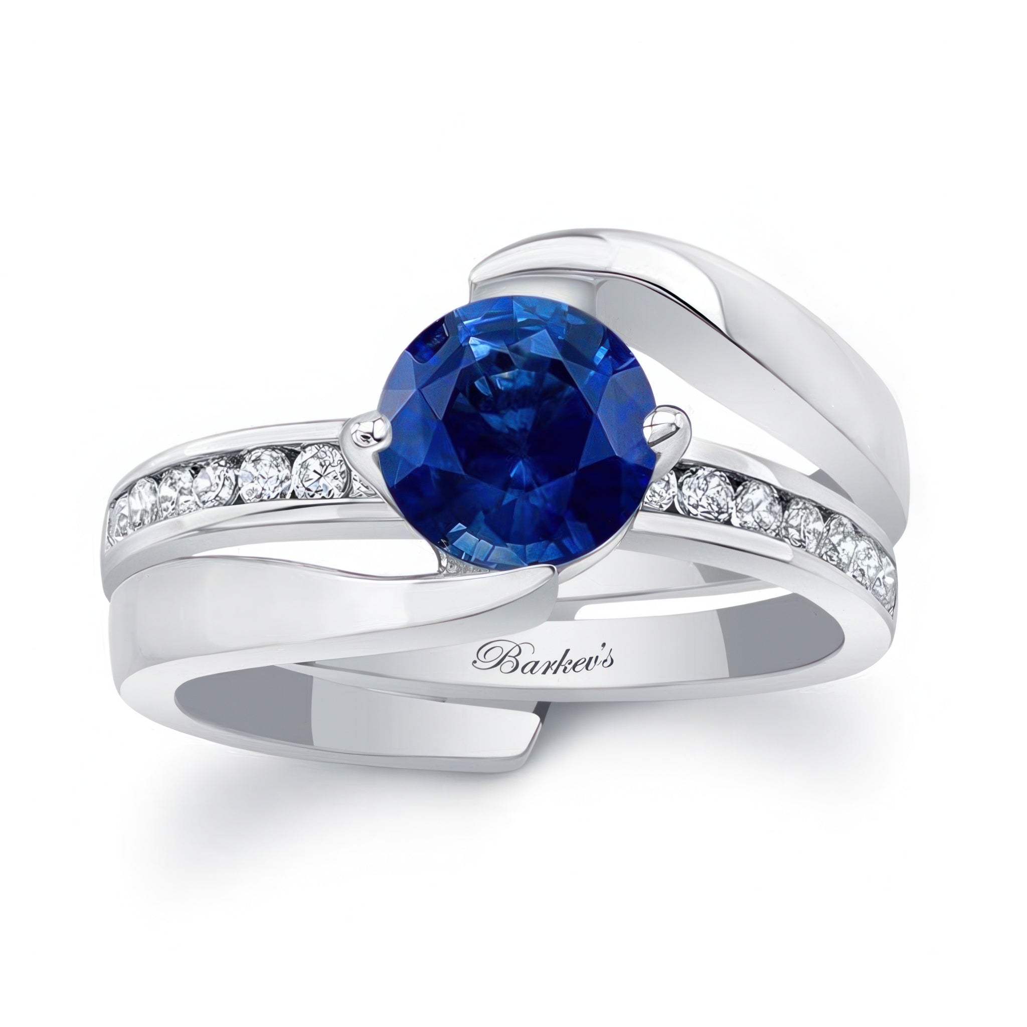 Interlocking Blue Sapphire And Diamond Wedding Ring Set