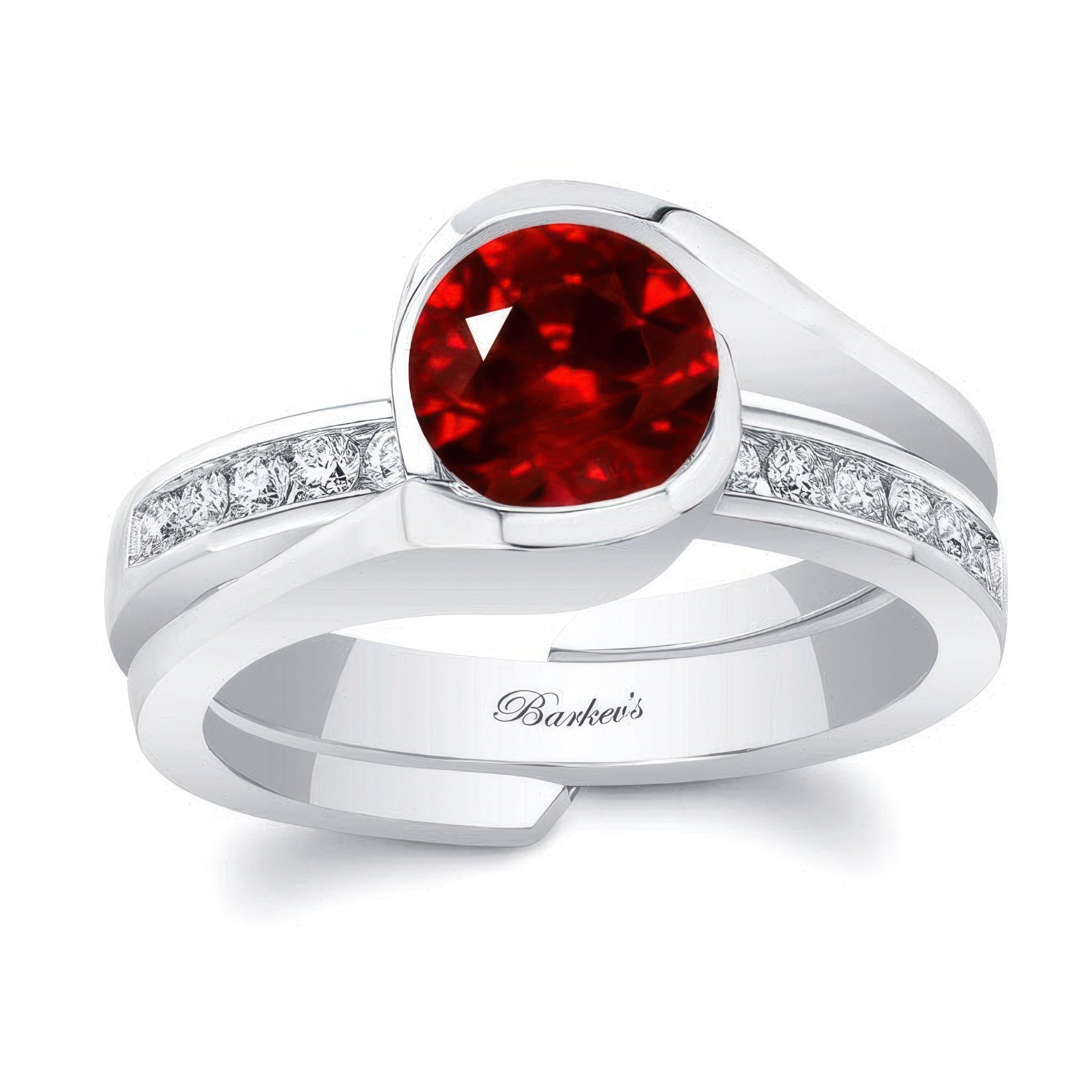 Half Bezel Ruby And Diamond Interlocking Bridal Set