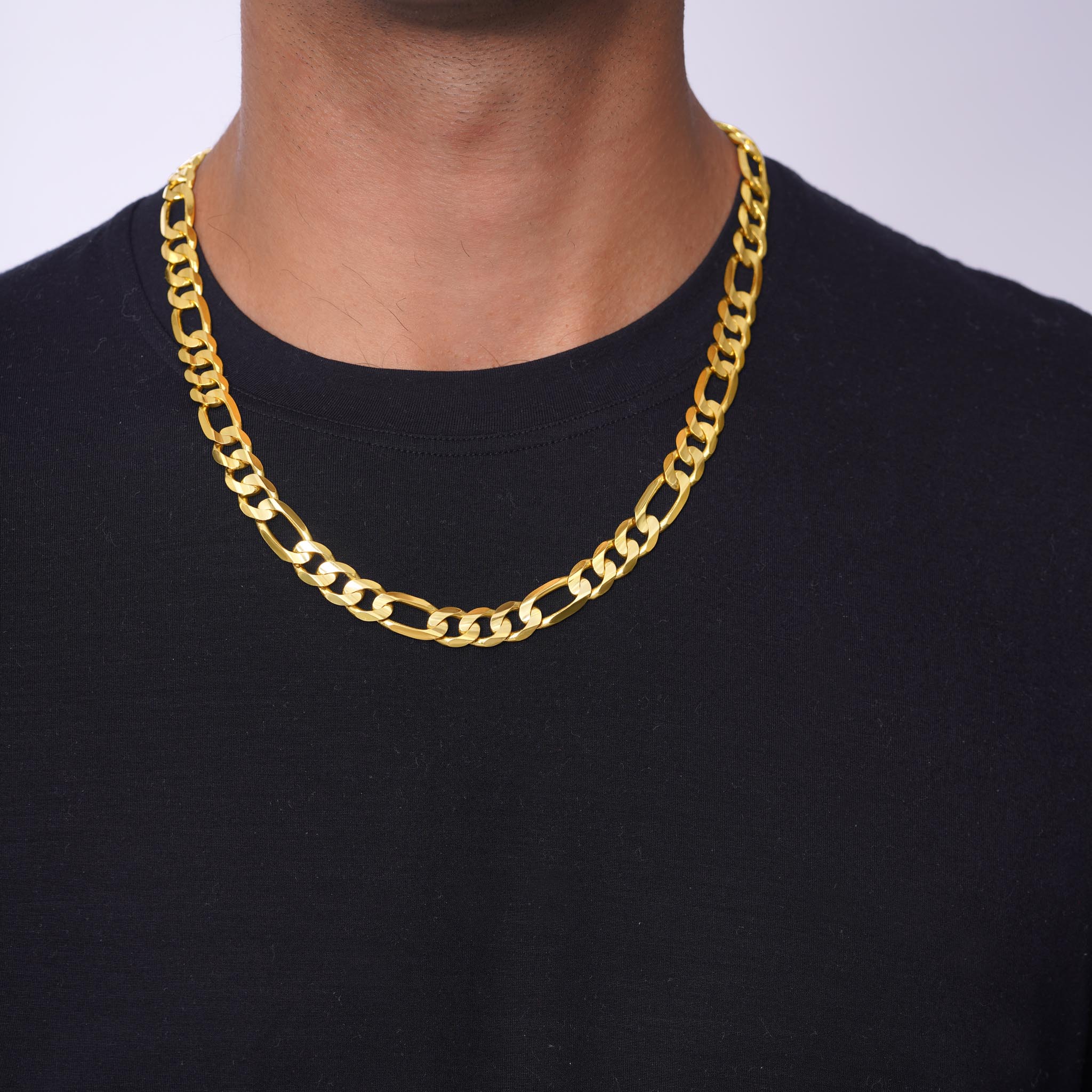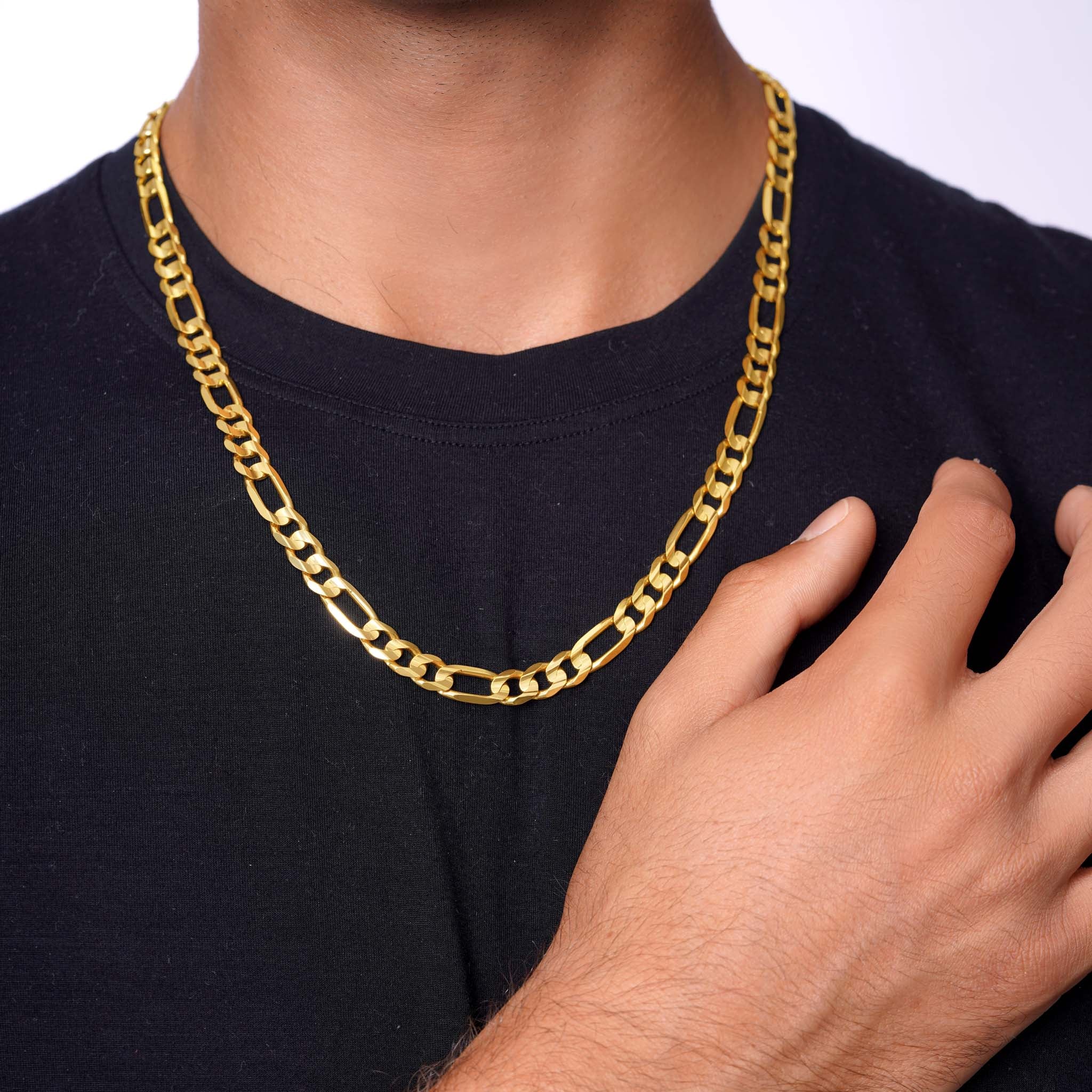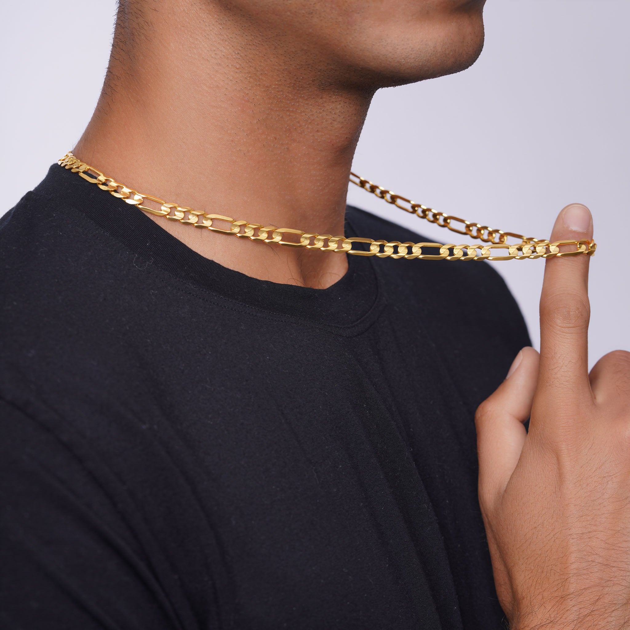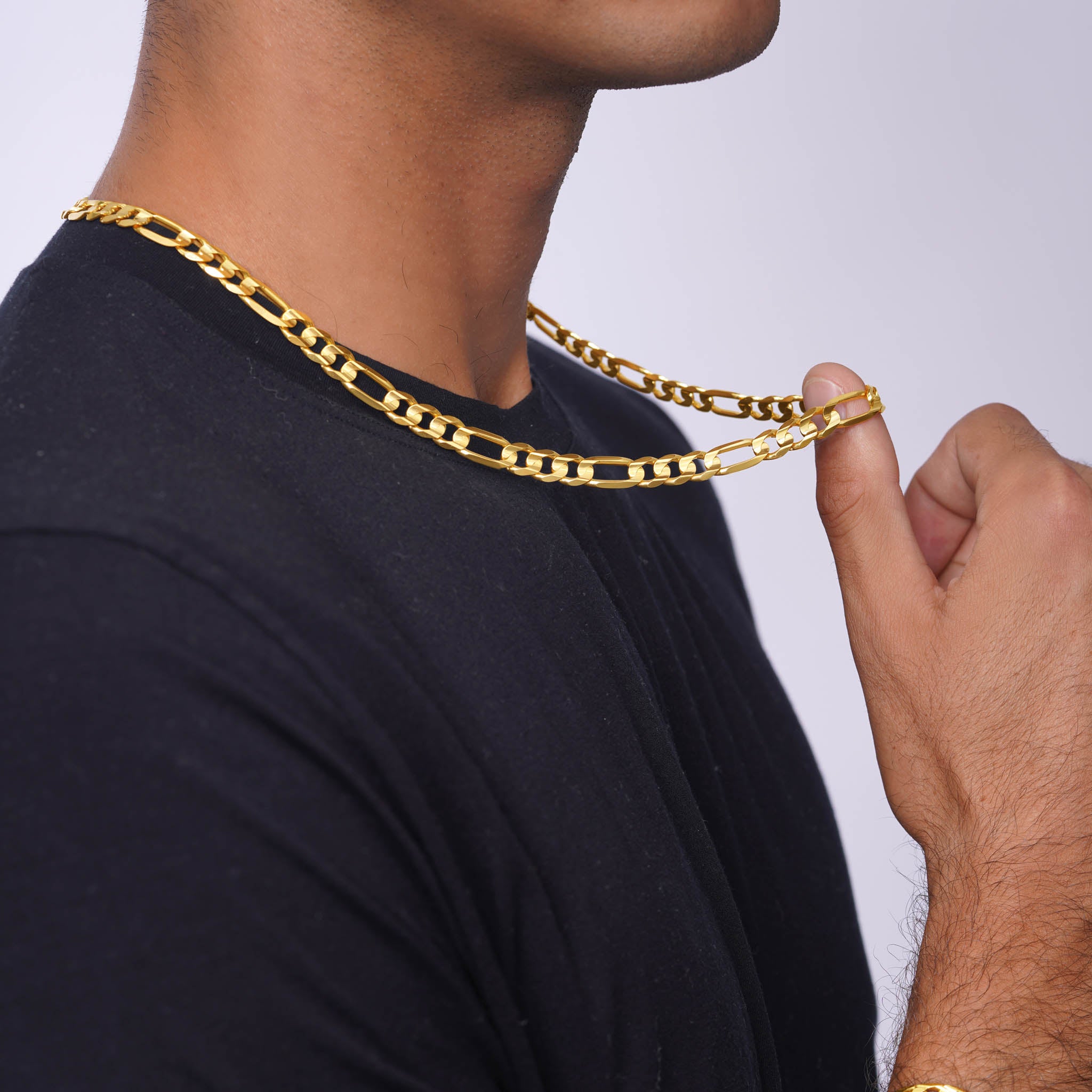 Crafted from premium 18k gold vermeil with a robust 2.5 micron plating, this Men's Figaro Chain delivers enduring elegance and durability. The classic Figaro link pattern—alternating shorter and longer segments—creates visual interest while maintaining structural integrity. This weight-appropriate design suits both everyday wear and formal occasions, offering the sophisticated appearance of solid gold at a more accessible price point. The substantial plating thickness ensures lasting luster and resistance to tarnishing, making it a reliable investment piece for the discerning gentleman.