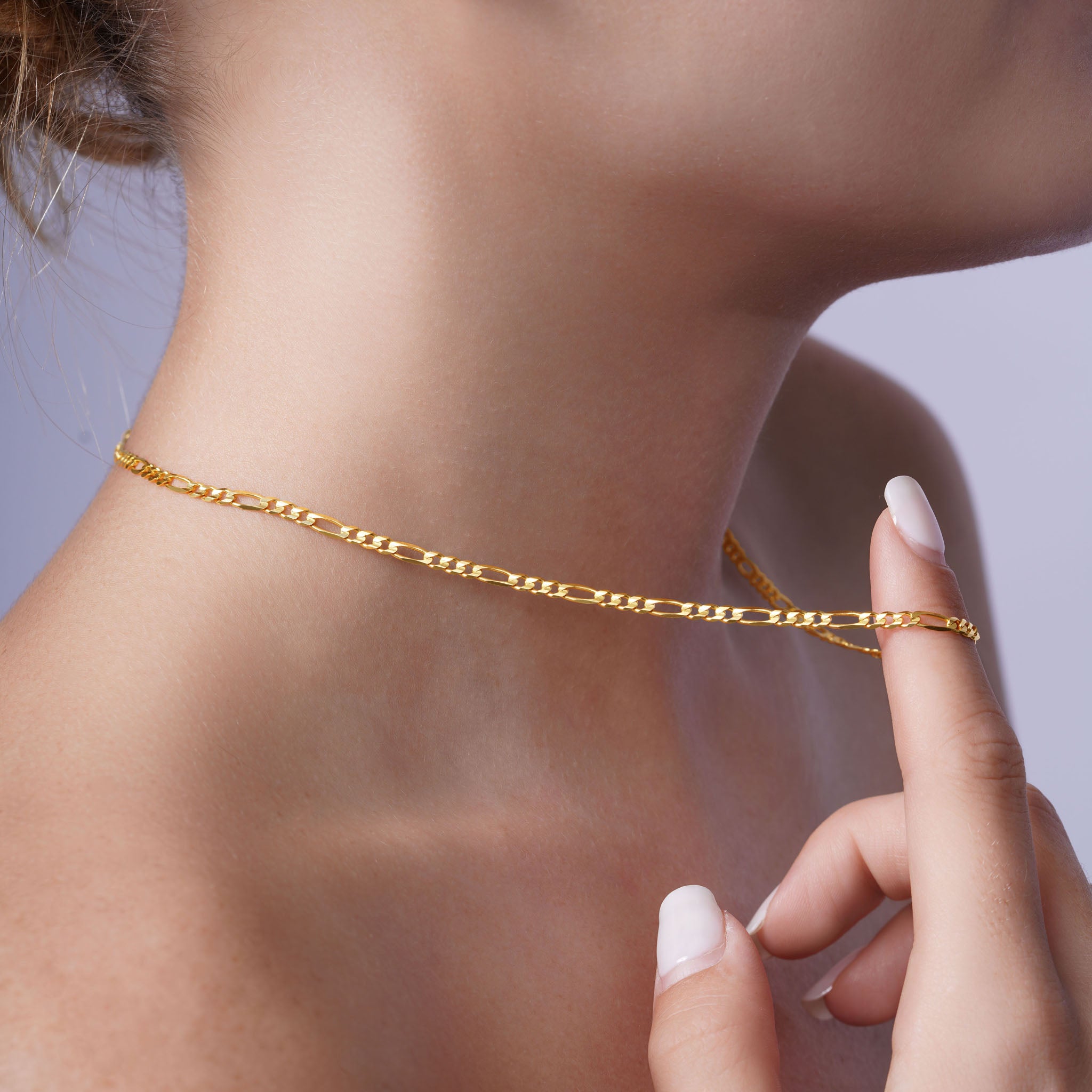 Elevate your jewelry collection with this Figaro Vermeil Gold Chain, crafted from premium 18k gold vermeil with a substantial 2.5 micron plating. The iconic Figaro link pattern—alternating short and long segments—delivers timeless sophistication and versatile styling for layering or standalone wear. Built to withstand daily use while maintaining its lustrous finish, this chain combines durability with refined elegance. A foundational piece that transitions seamlessly from casual to formal occasions.