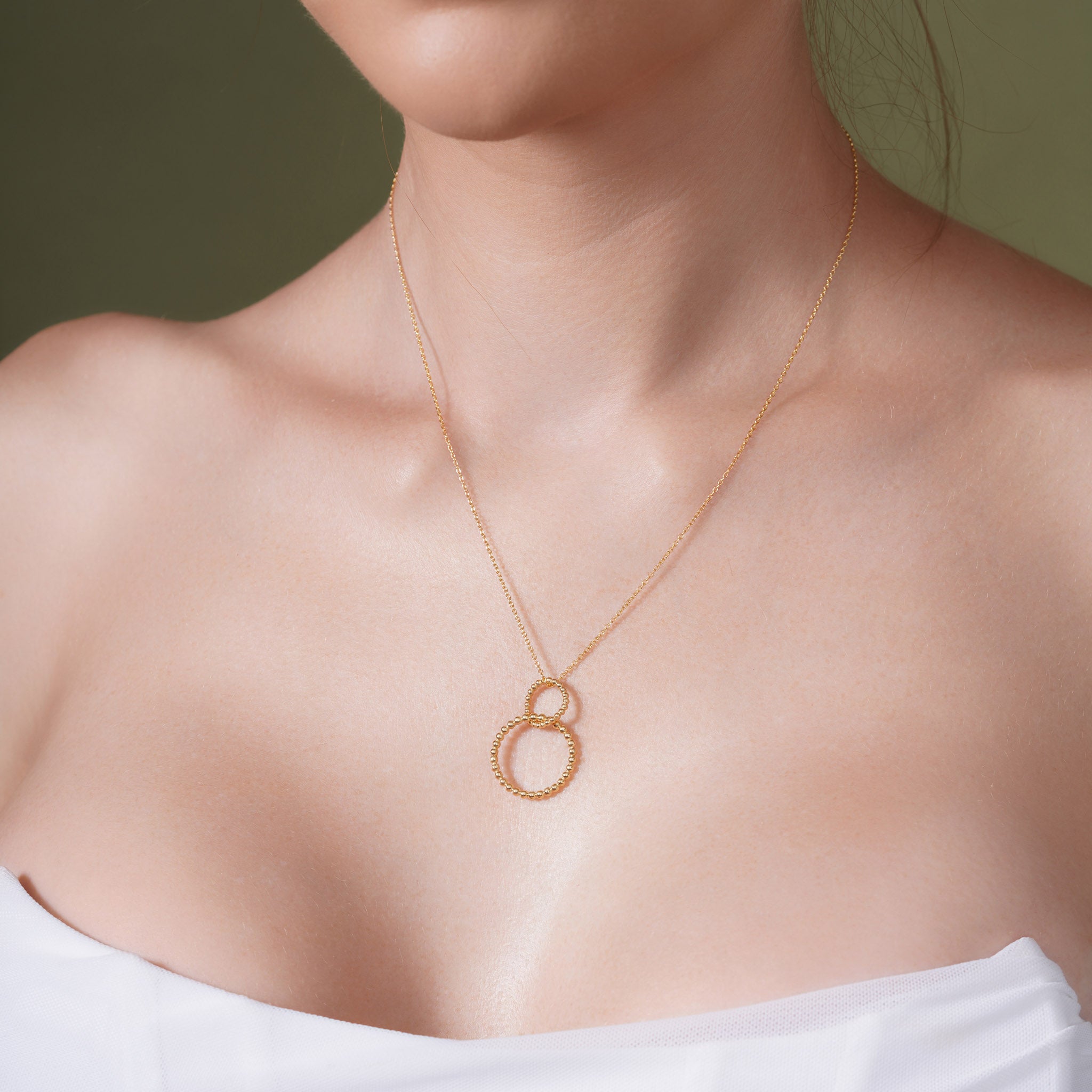 Elevate your style with this vermeil double beaded circle necklace, showcasing two elegantly intertwined beaded circles. Crafted with precision, this piece offers a modern yet timeless design that complements both casual and formal attire. Its dual-circle motif symbolizes unity and balance, making it a thoughtful accessory for everyday wear or special occasions.
