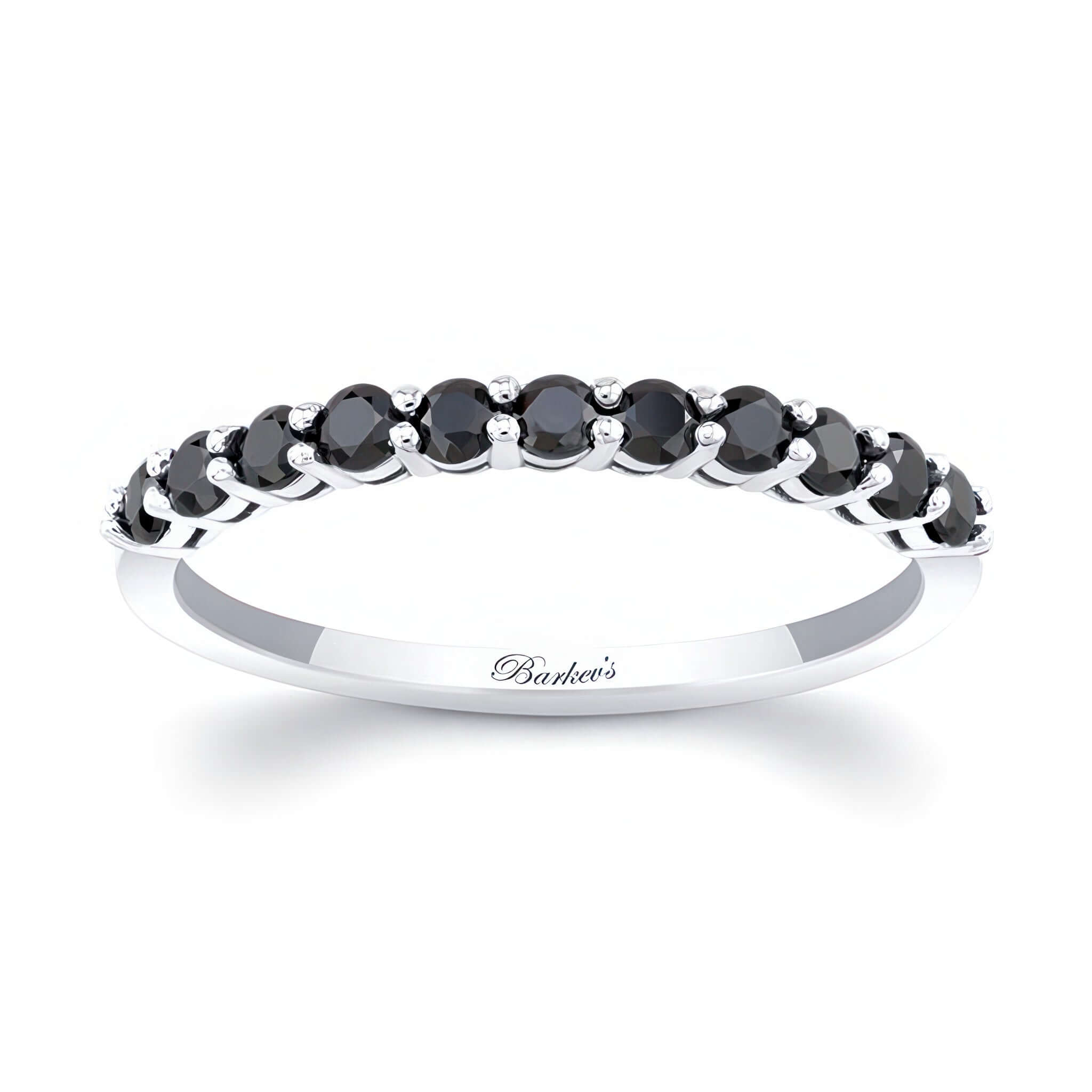 A 0.44 carat black diamond half eternity band featuring shared prong set black diamonds