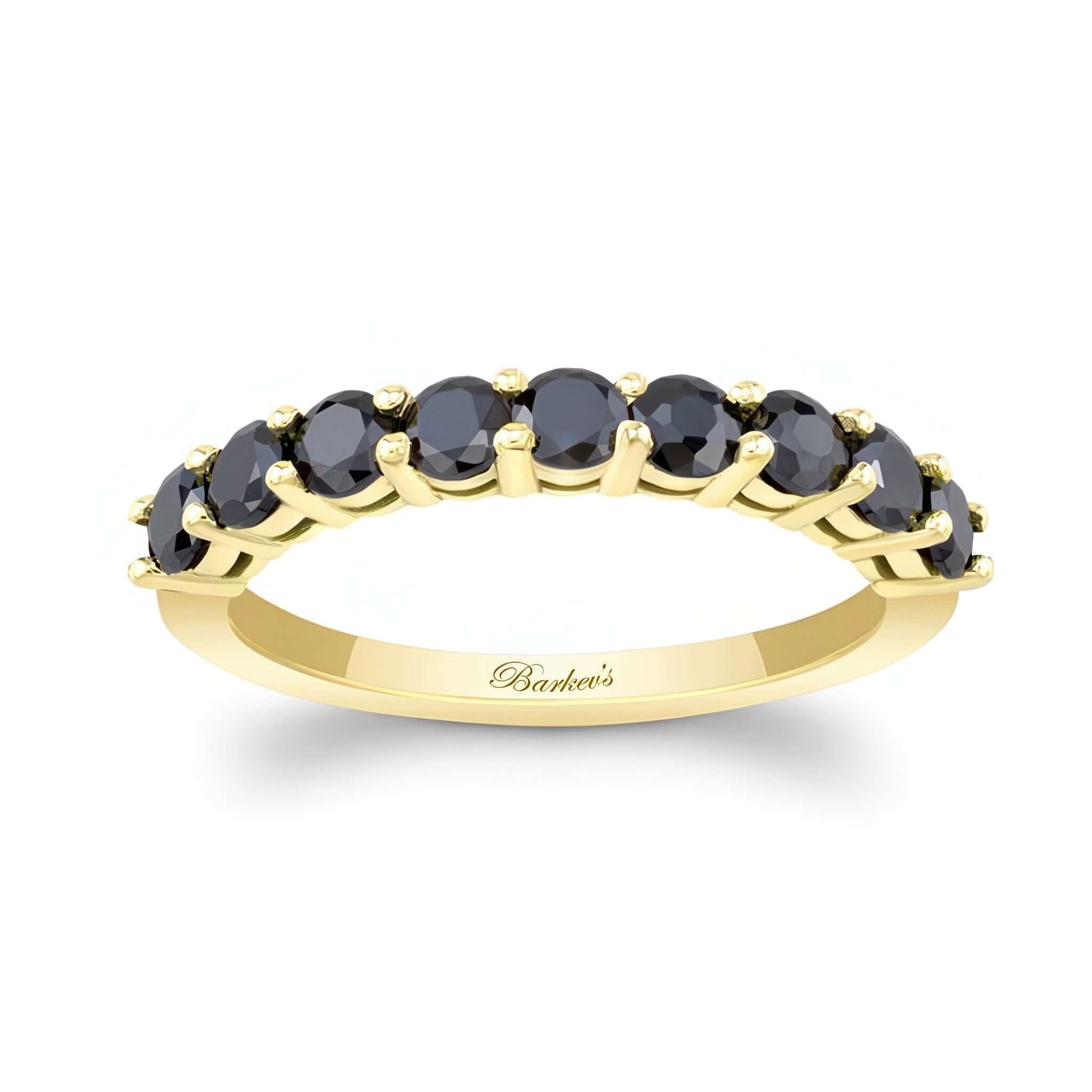 A 0.90 carat black diamond half eternity band featuring shared prong set black diamonds