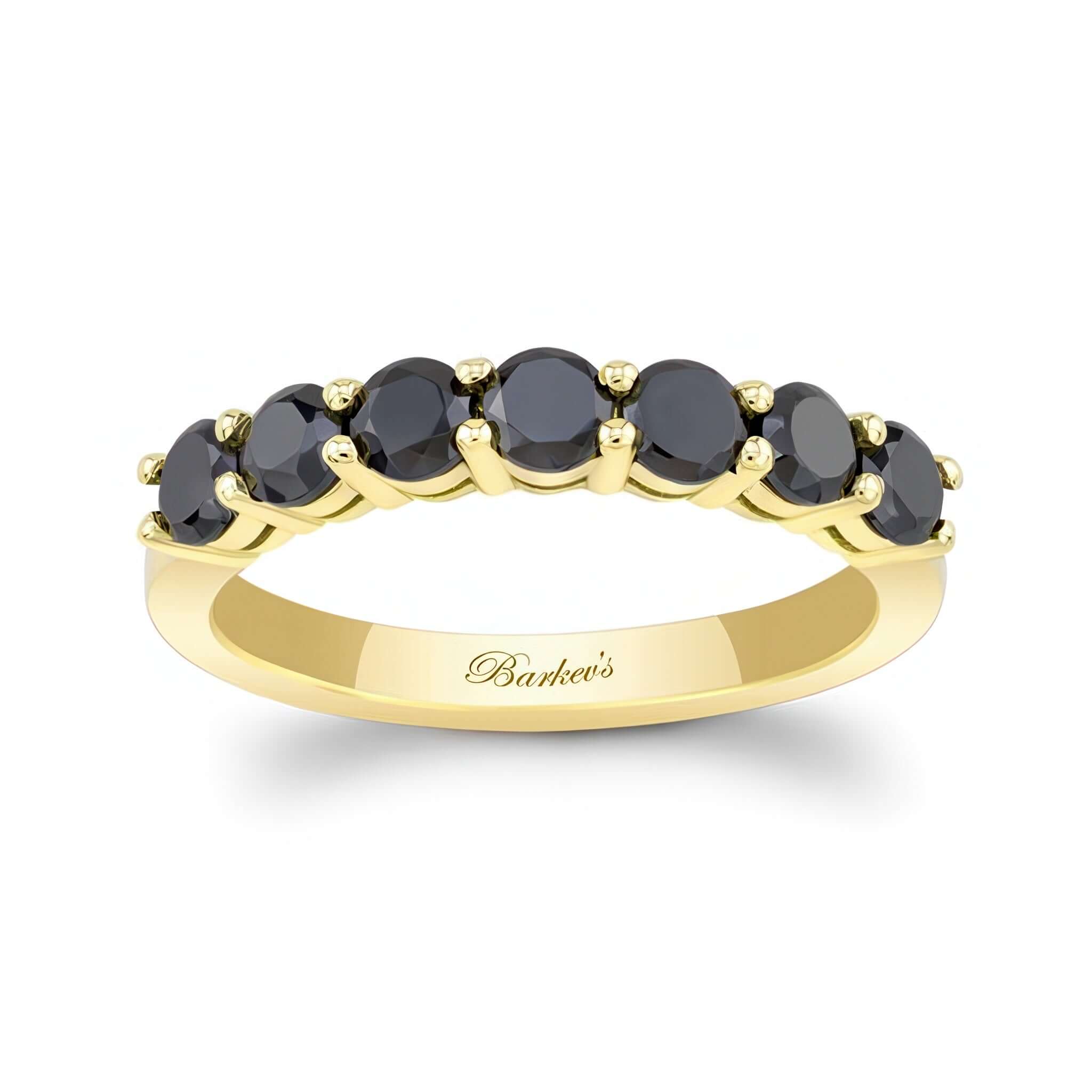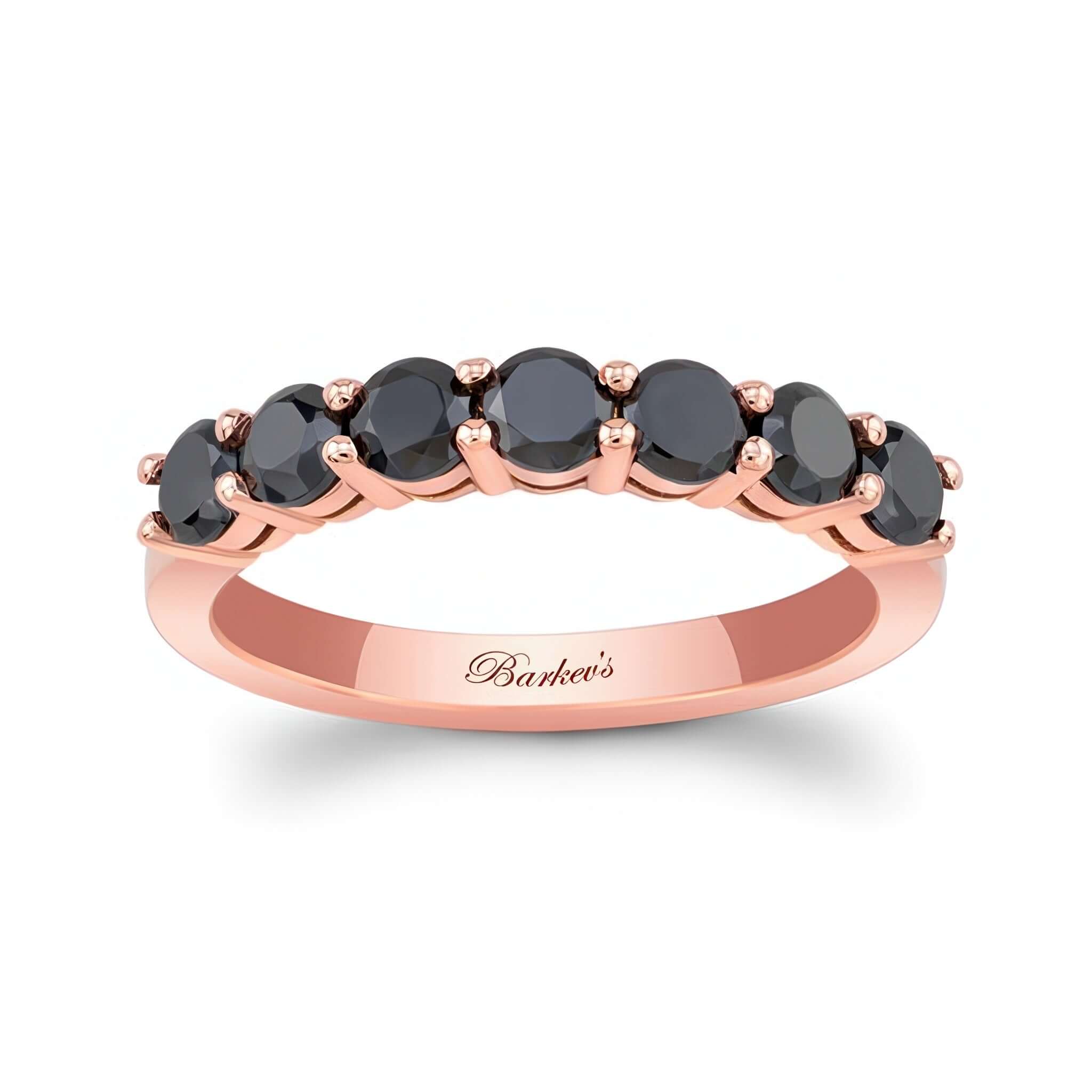 A 1.05 carat black diamond half eternity band featuring shared prong set black diamonds
