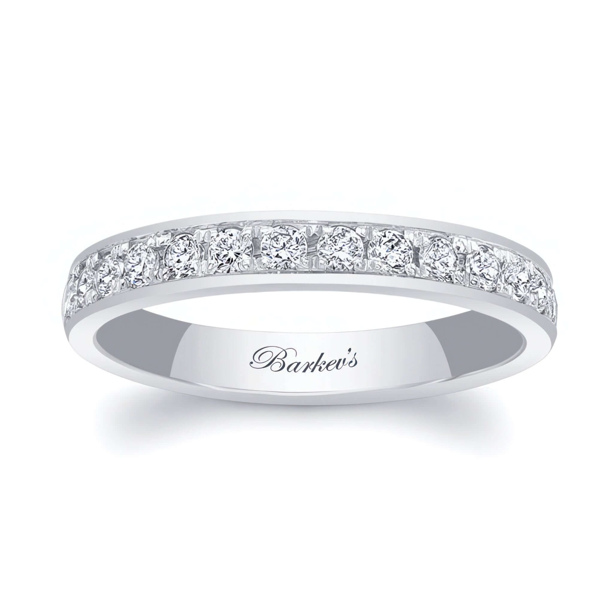 This 3mm one row domed diamond wedding bands features 1 row of shared prong set diamonds and domed sides.