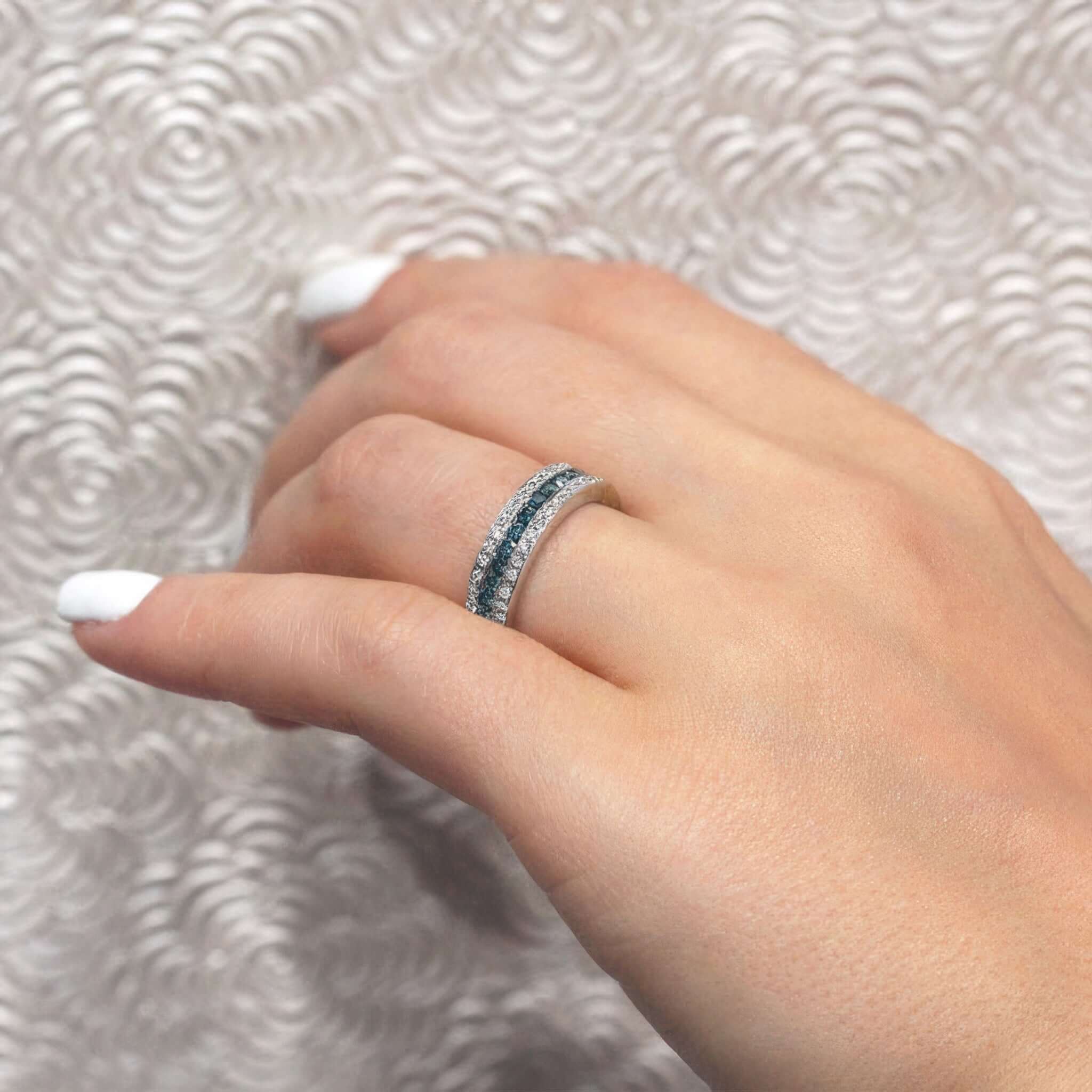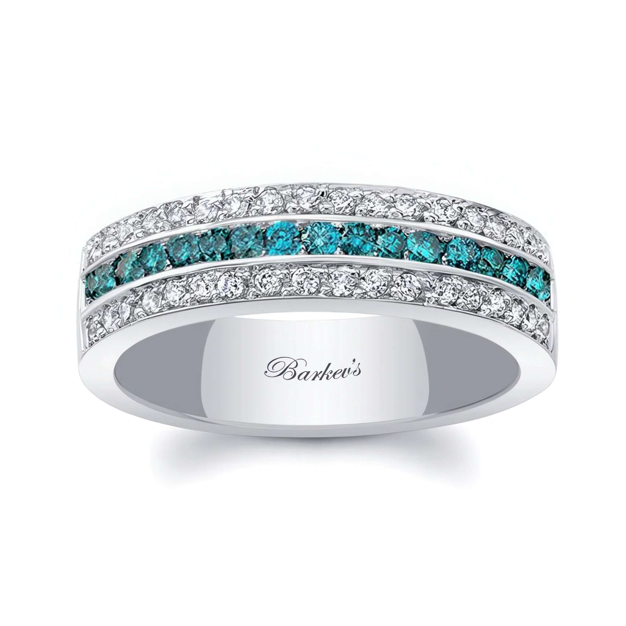 Three Row Blue And White Diamond Wedding Band