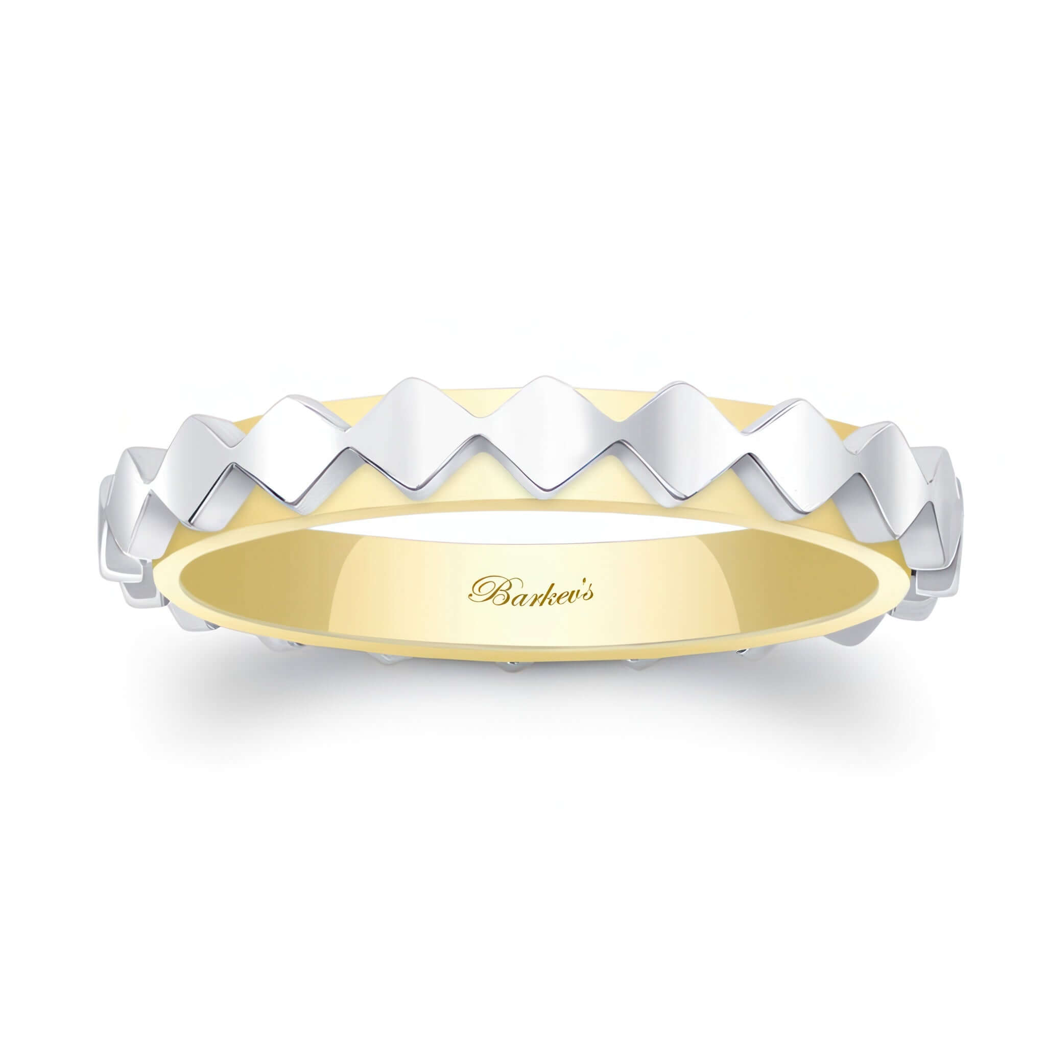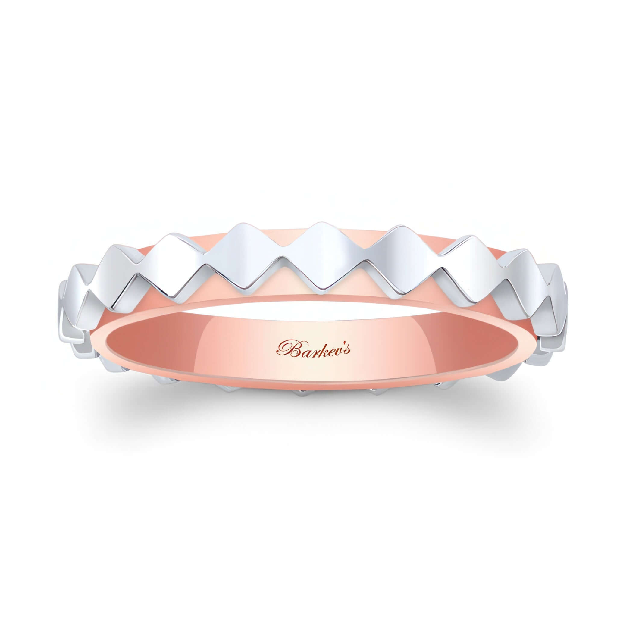 A unique wedding band for women featuring a raised center with a diamond pattern.