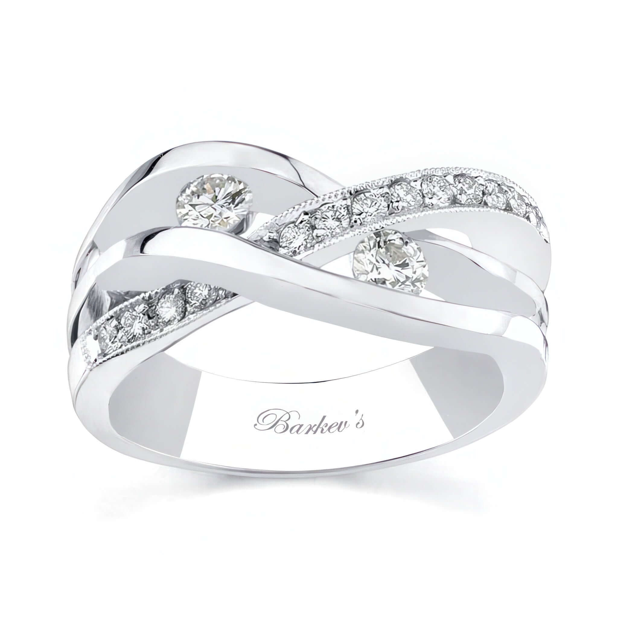 This beautiful wavy wedding band features 2 channel set diamonds with a unique wavy design and pave set diamonds for extra sparkle.