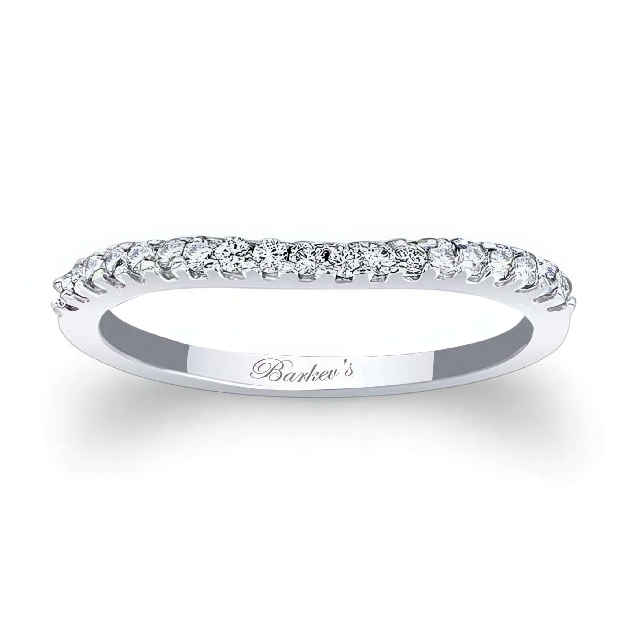 A wedding band featuring shared prong diamonds made to match the curves of our engagement ring style 7539L.