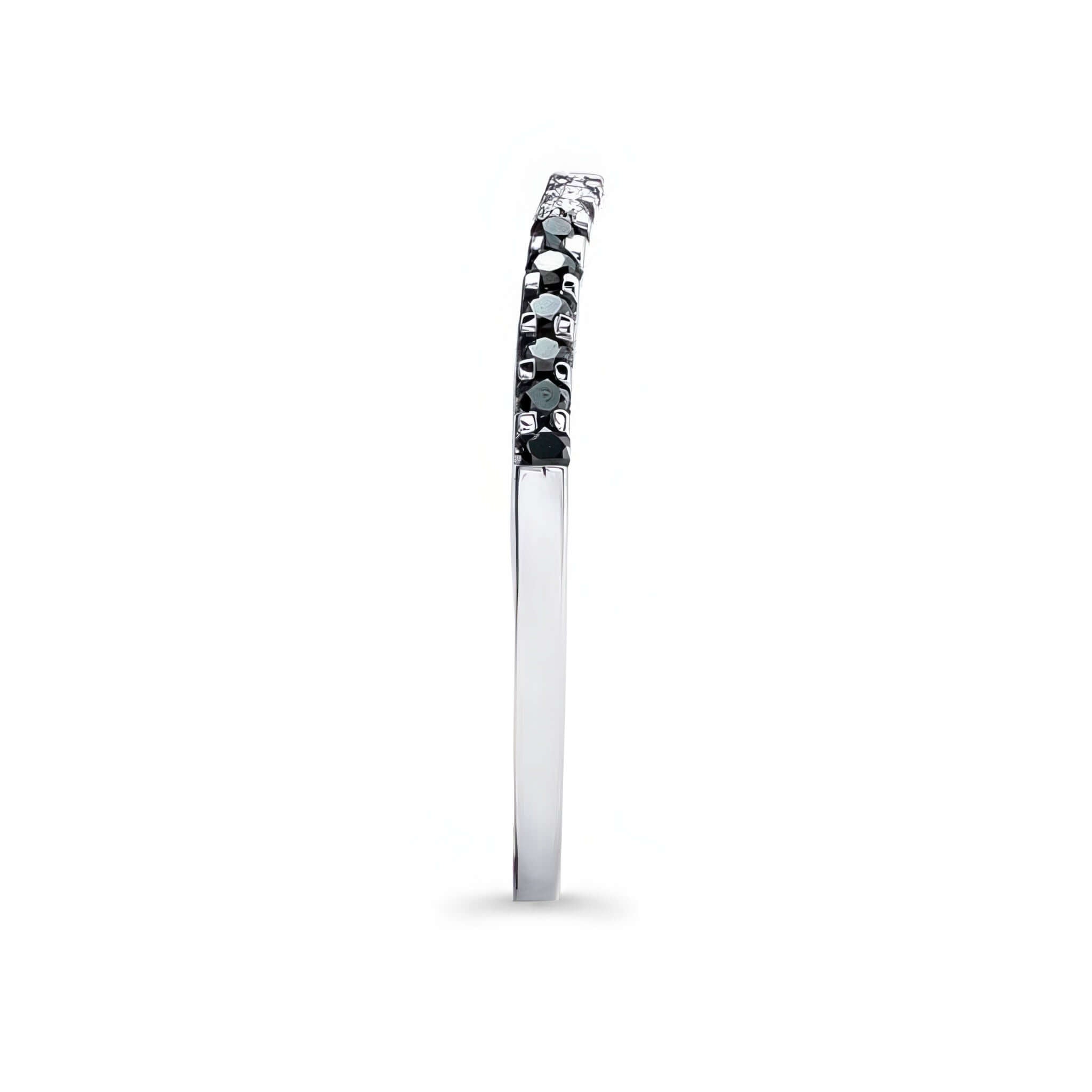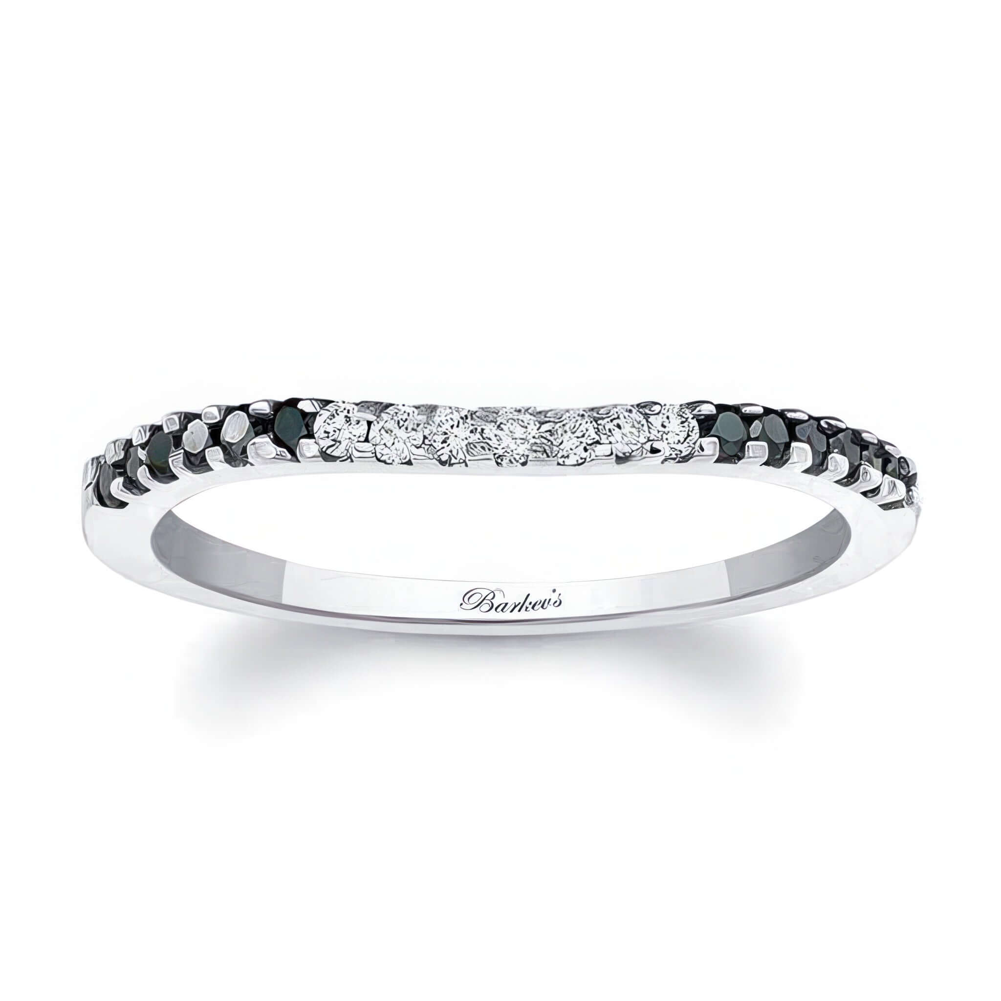 A wedding band featuring shared prong black and white diamonds made to match the curves of our engagement ring style 7539LBK.