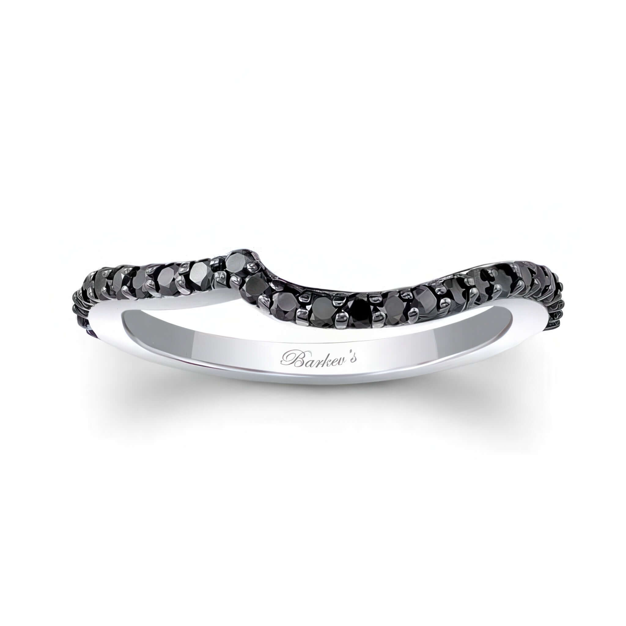 A wedding band for ring style 8149LBK featuring shared prong set black diamonds and a curve to match the engagement ring.