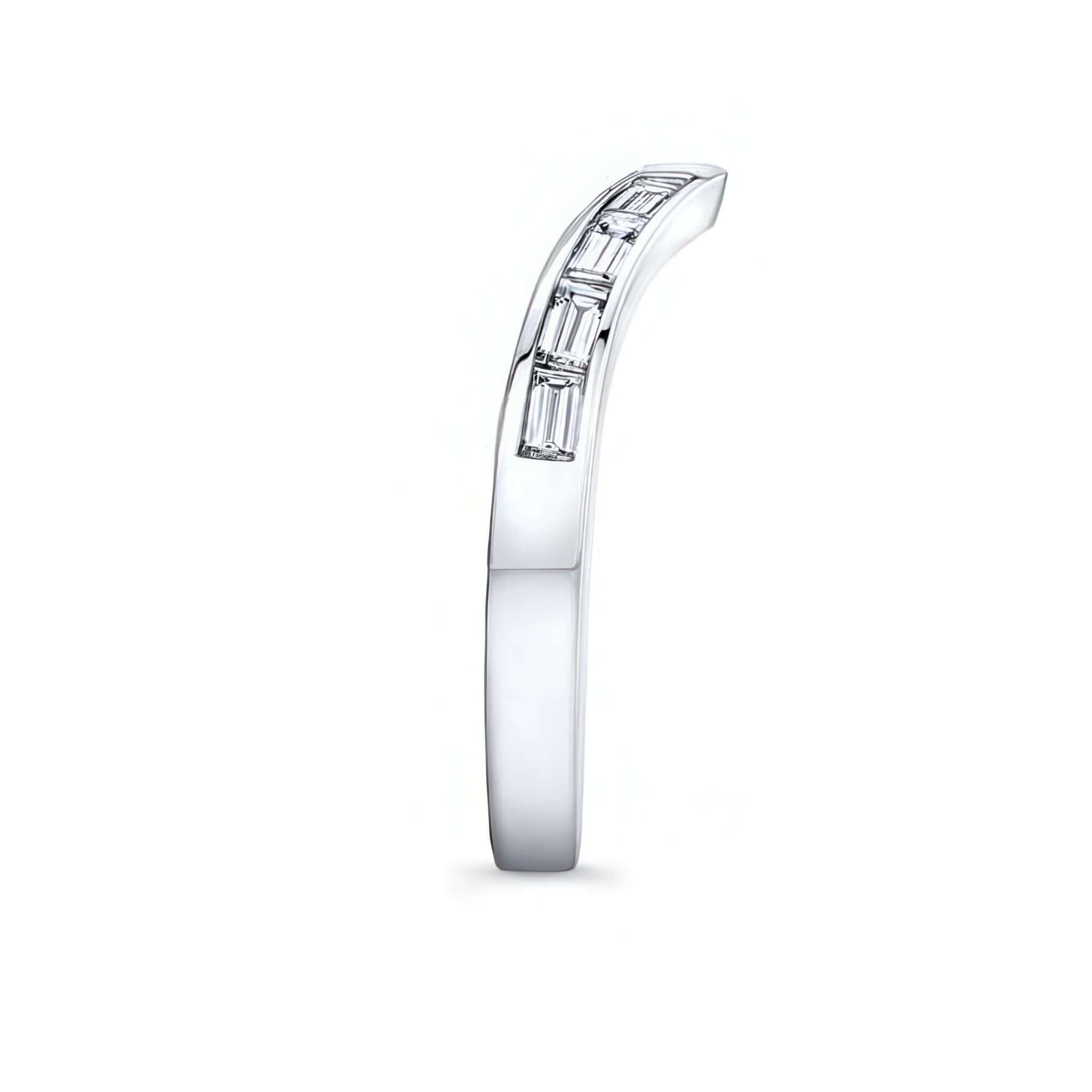 A wedding band for ring style 8169L featuring 8 baguette diamonds and a curve to match the engagement ring.