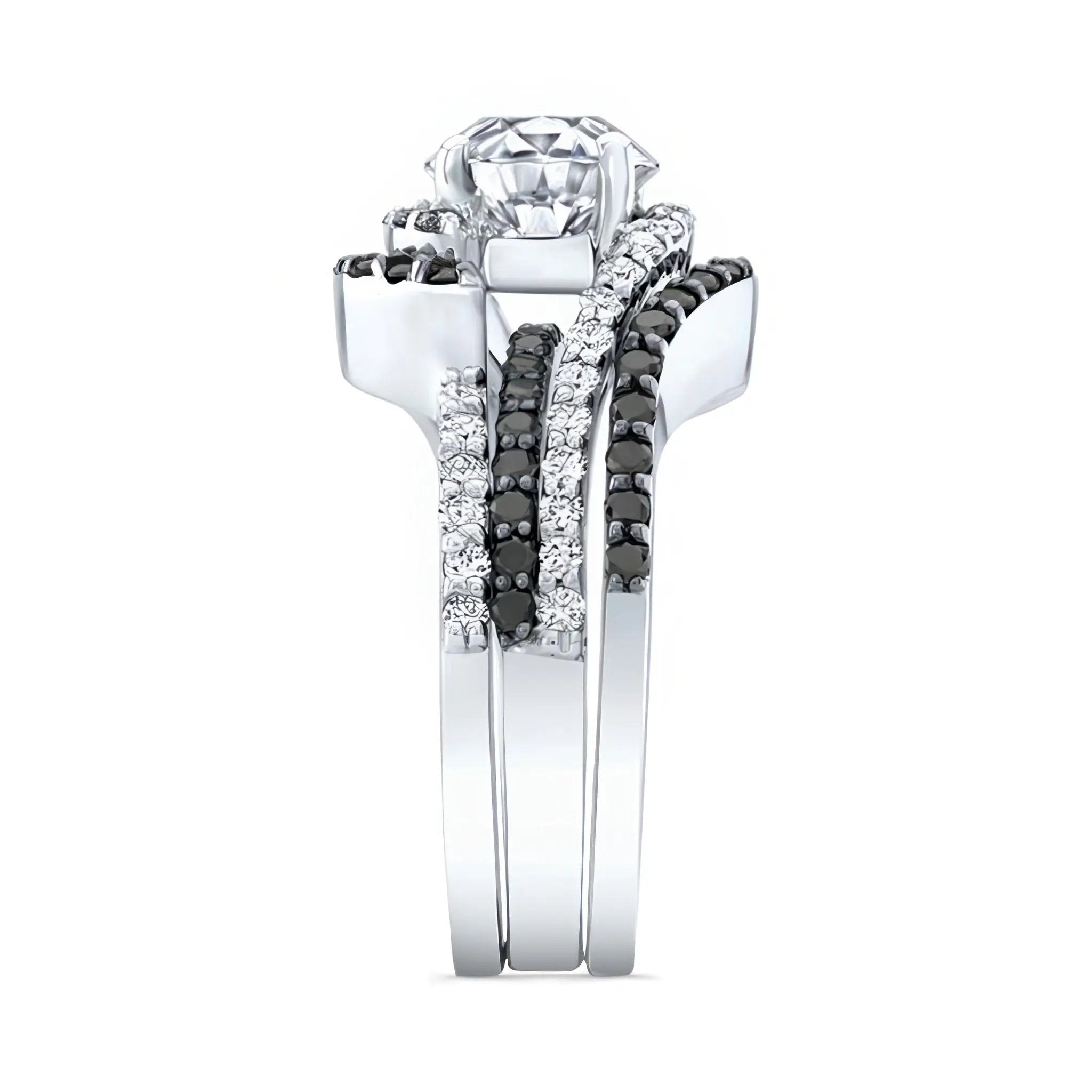 1 Carat Black Diamond Accent Wedding Set With 2 Bands