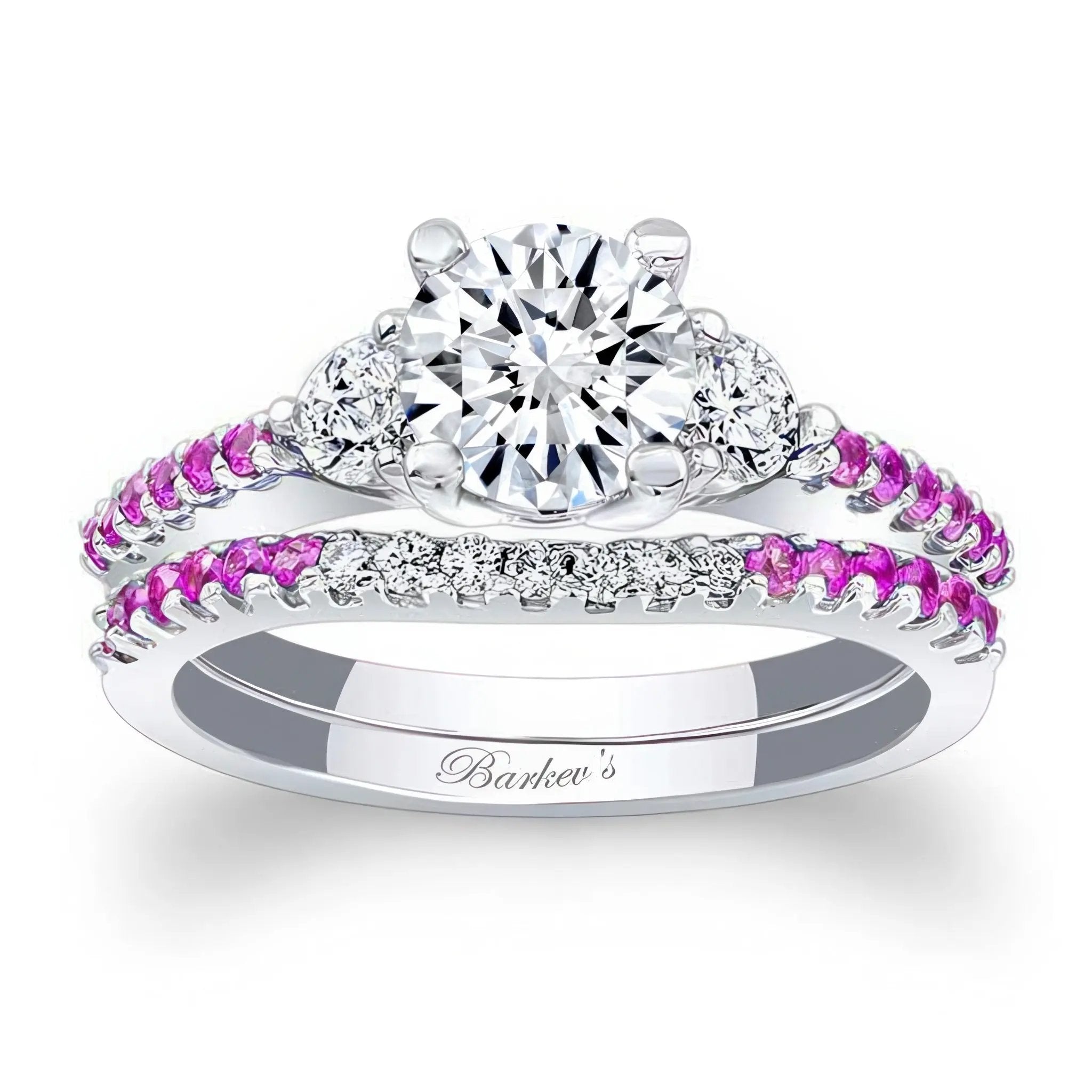 3 Stone Pink Sapphire Accent Wedding Ring Set