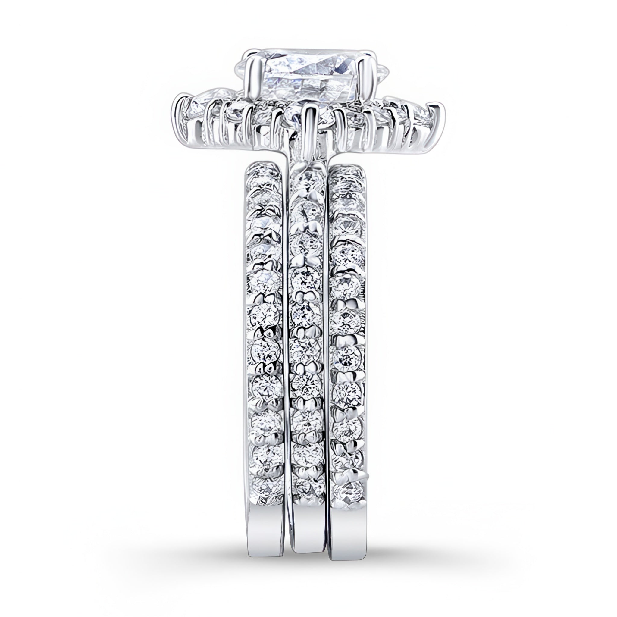 2 Carat Moissanite Halo Diamond Set With 2 Bands