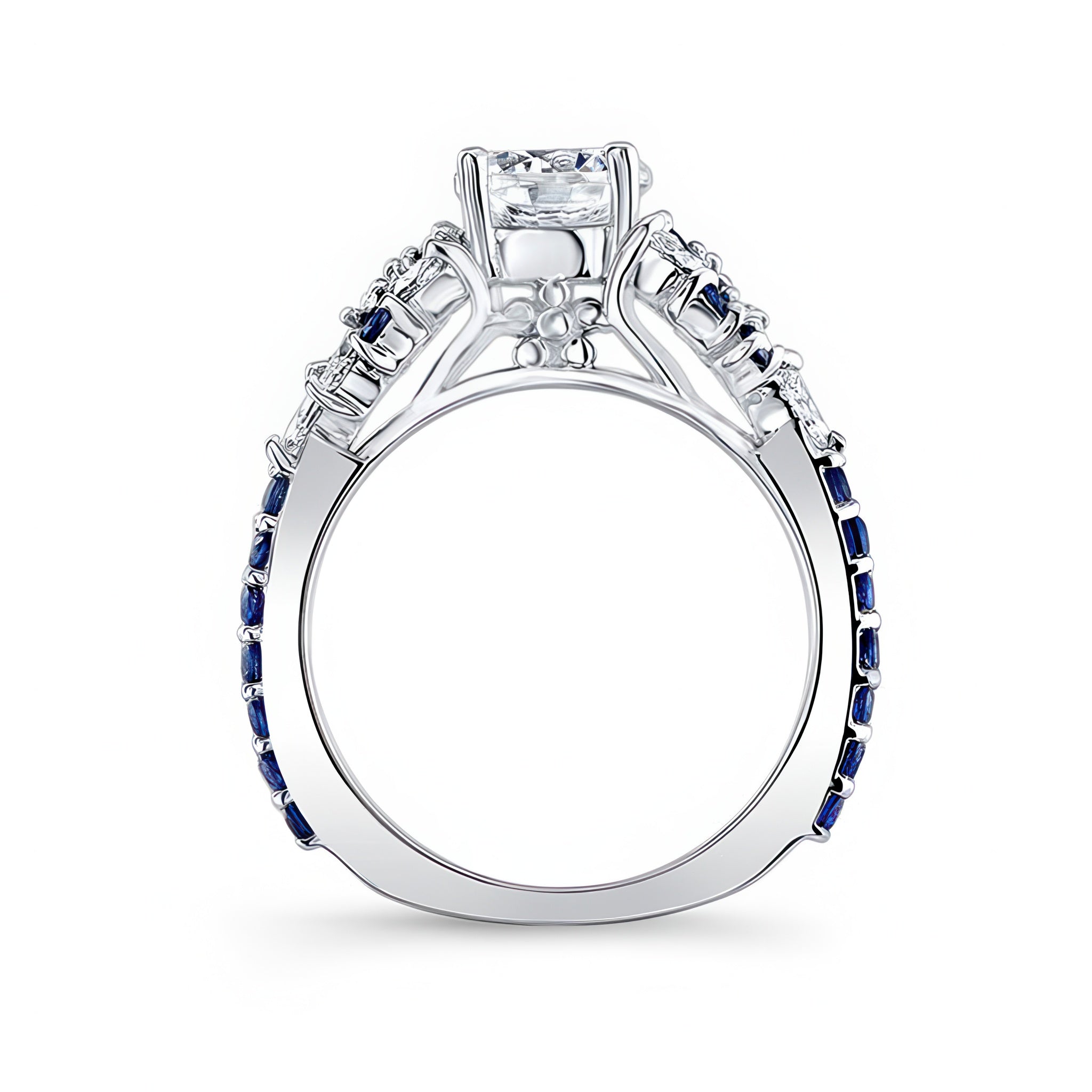 Vintage Marquise Blue Sapphire Accent Moissanite Engagement Ring