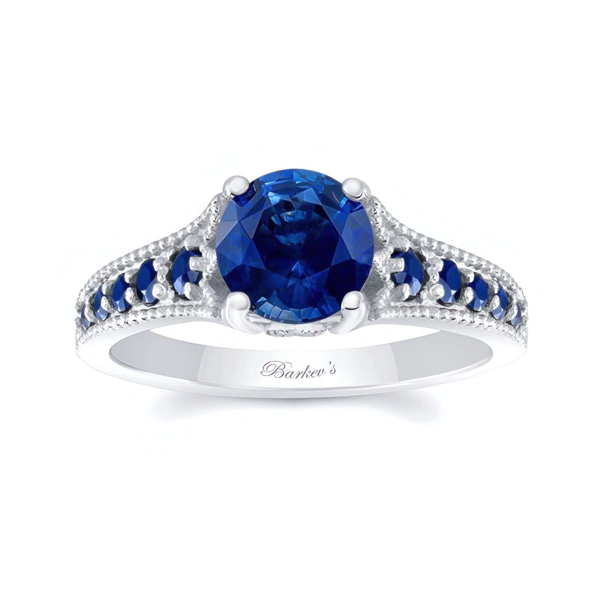 1 Carat Round Blue Sapphire Halo Engagement Ring