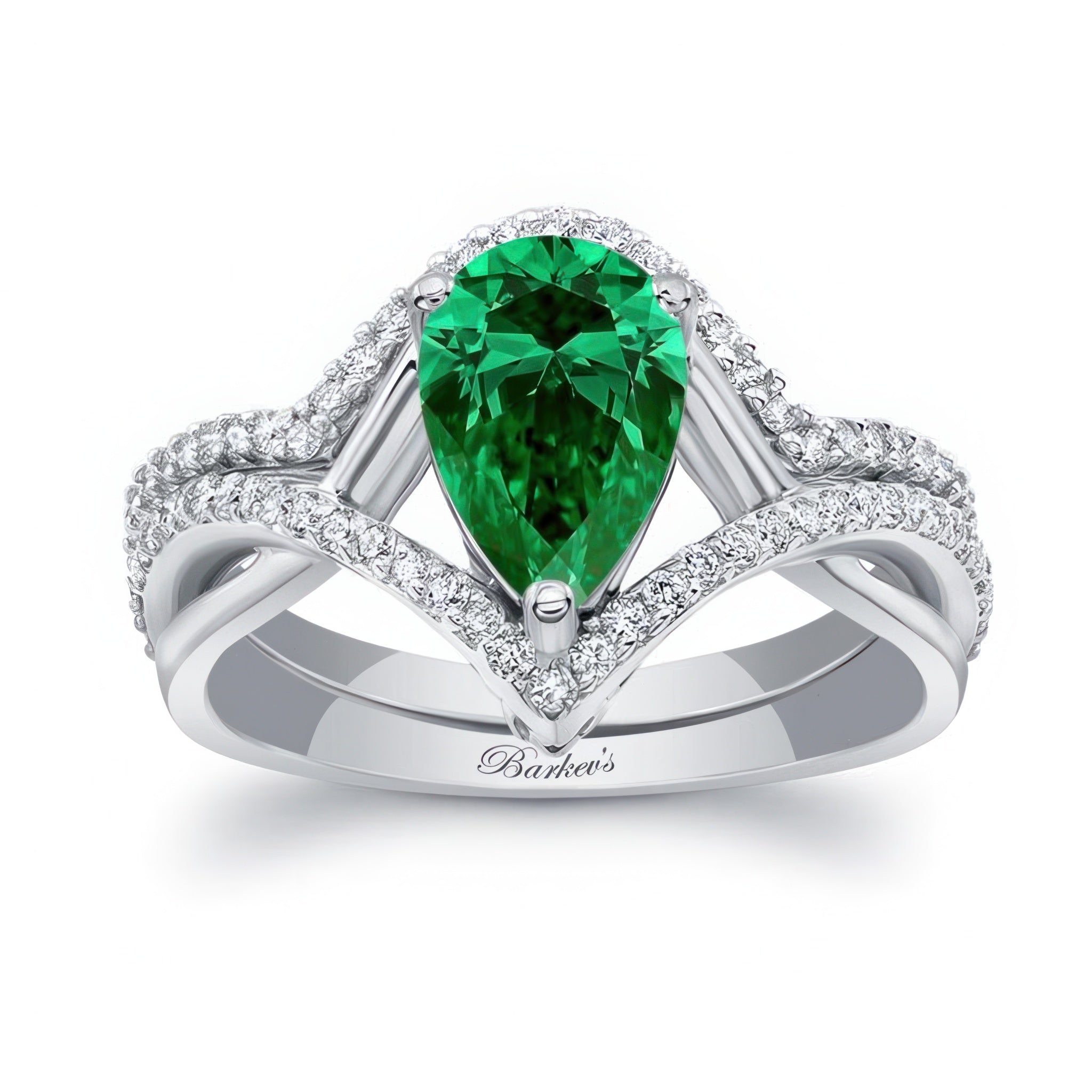Unique Pear Shaped Emerald And Diamond Wedding Set