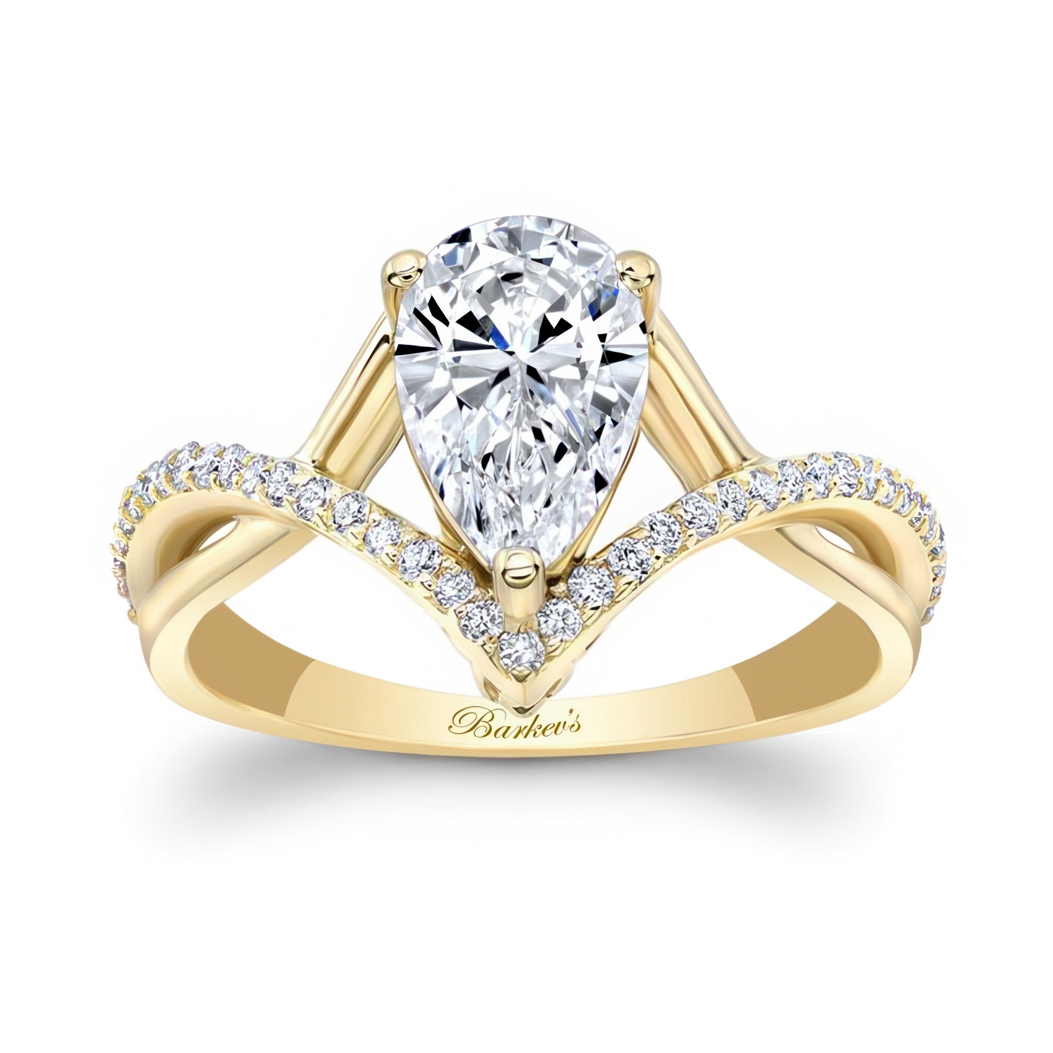 Effortlessly iconic—this is the ring everyone’s falling for. The Unique Pear Shaped Engagement Ring has earned its place as a customer favorite with its refined silhouette and exceptional comfort. Featuring a stunning pear-shaped center stone, it’s paired with a twisted shank lined with 43 round accent diamonds for an elegant play of movement and brilliance.