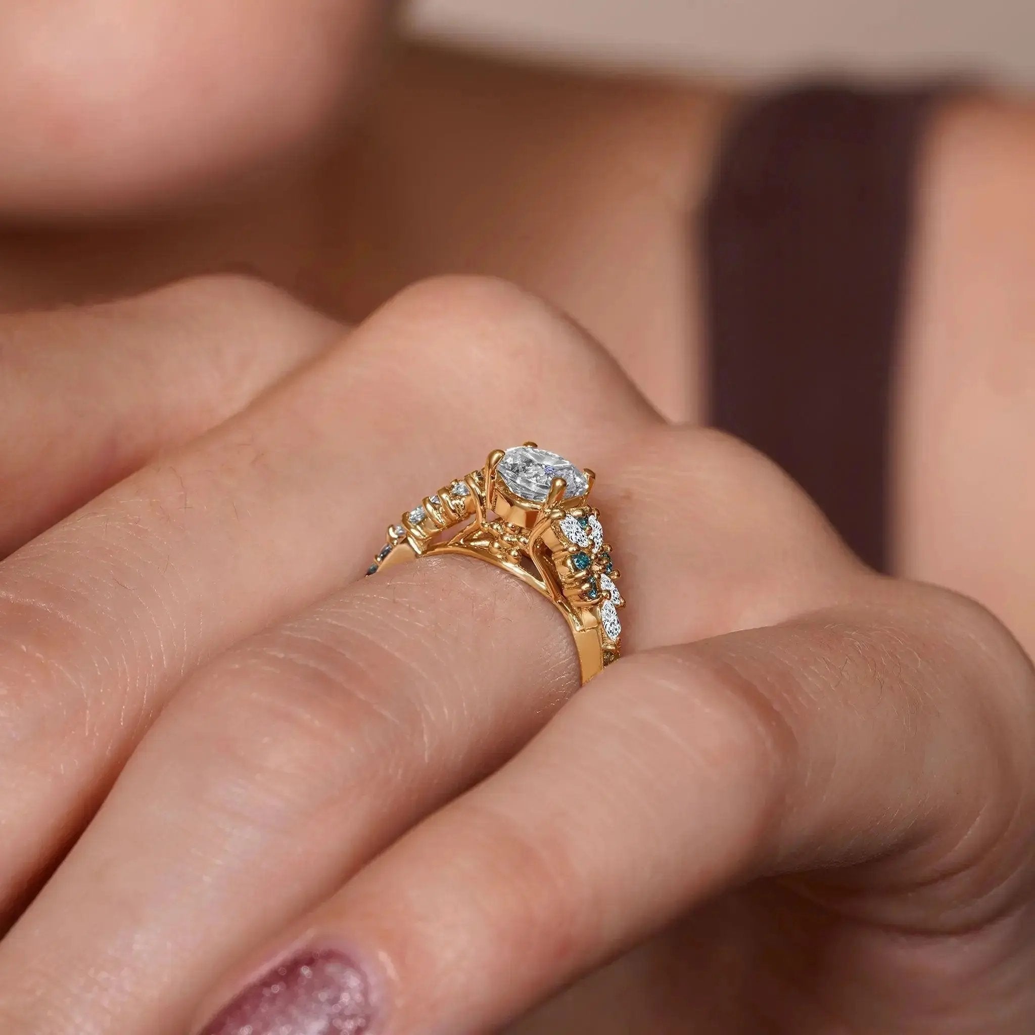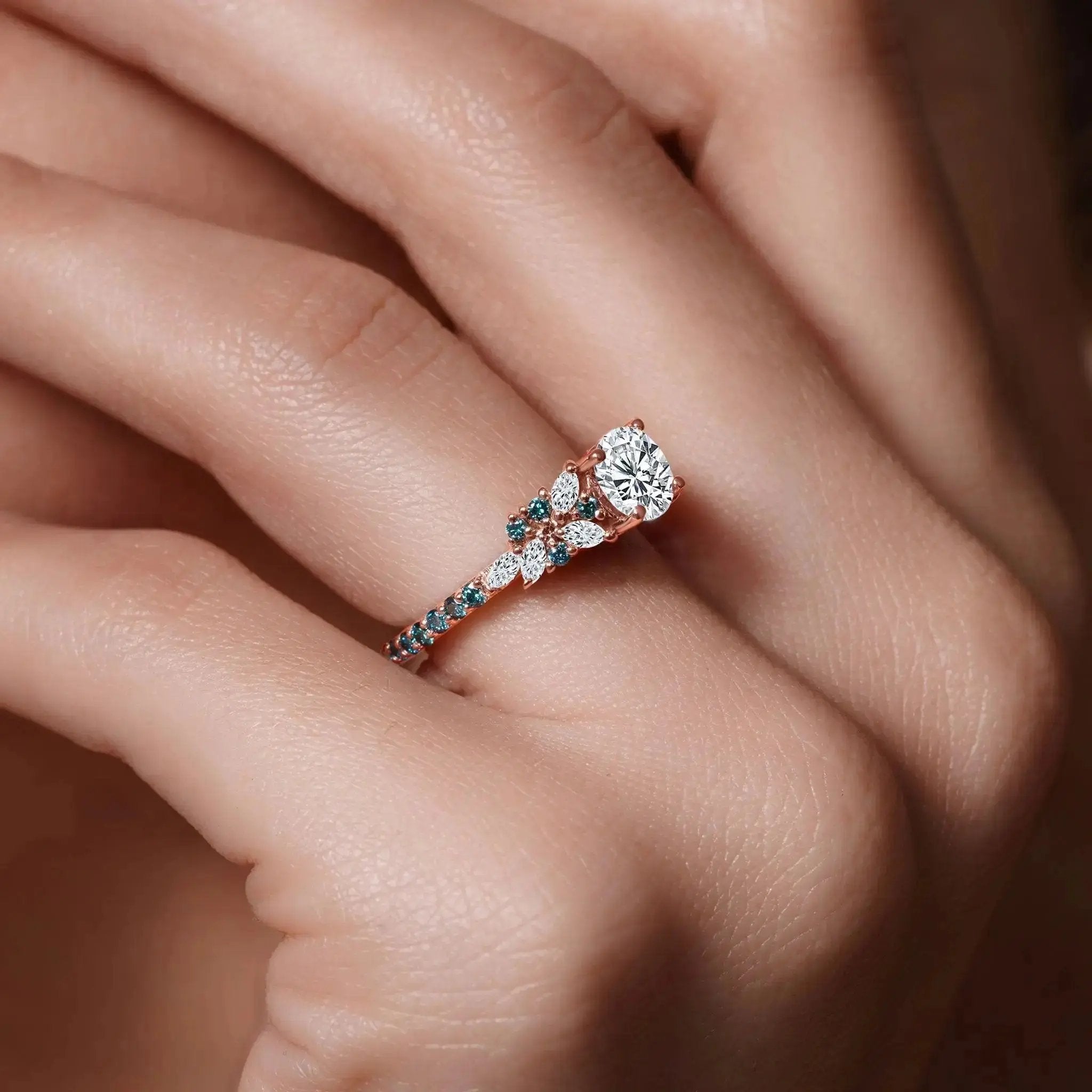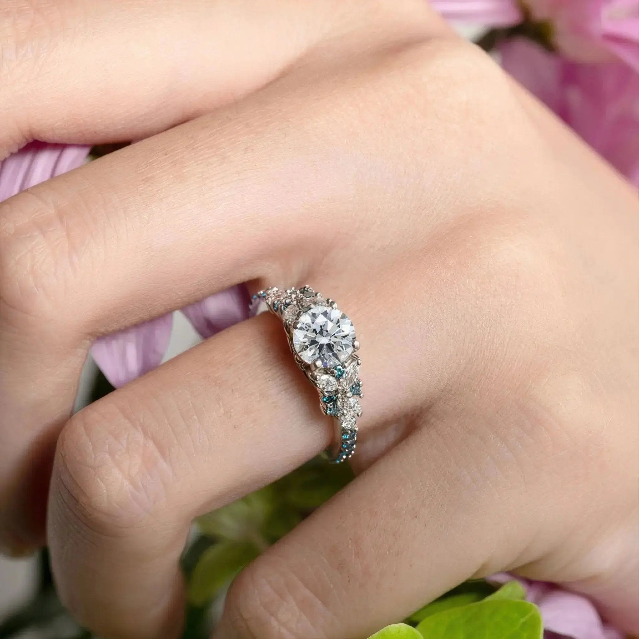 Vintage Marquise Blue Diamond Accent Engagement Ring