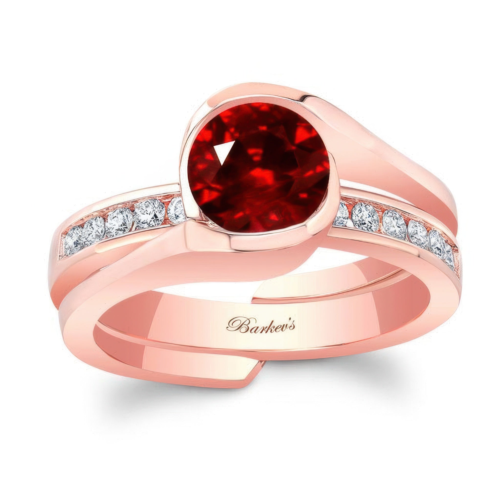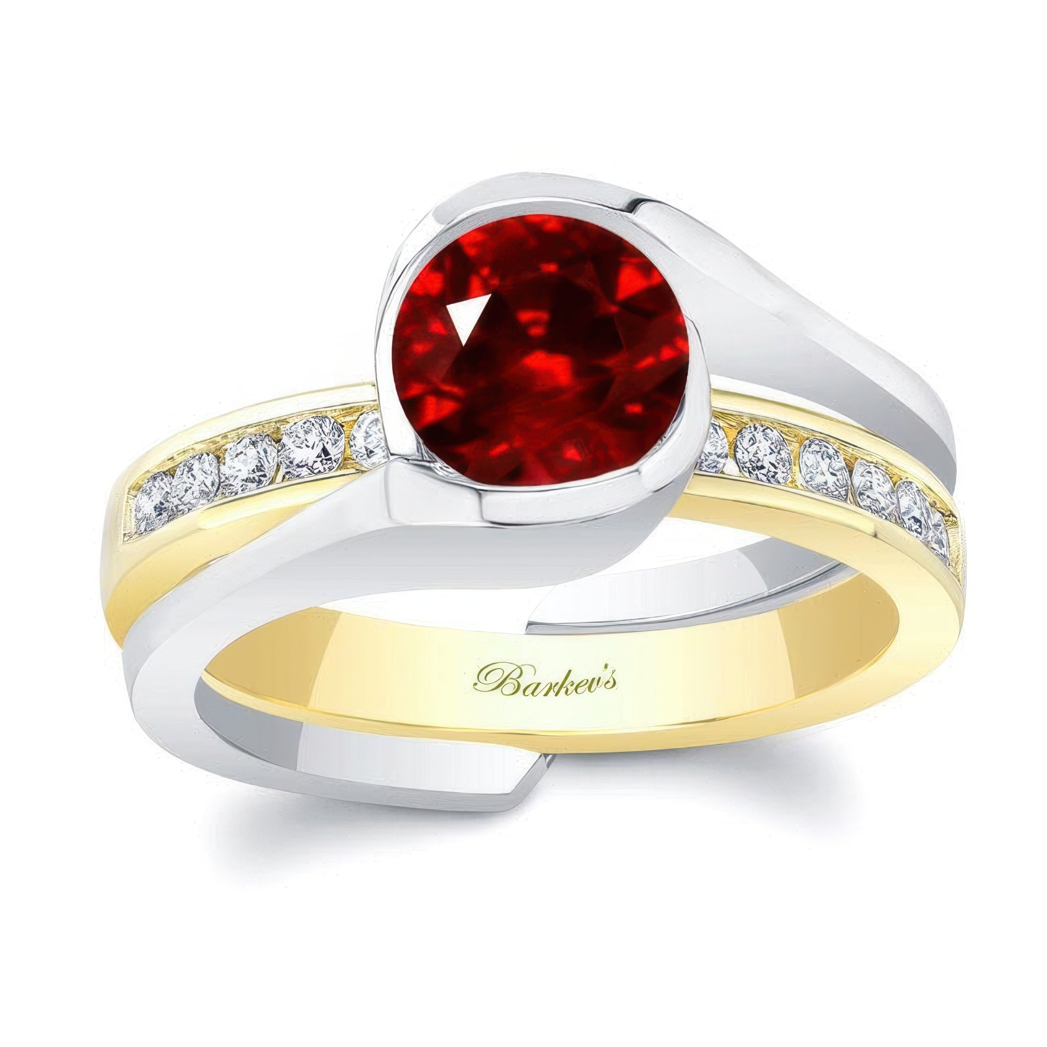 Half Bezel Ruby And Diamond Interlocking Bridal Set