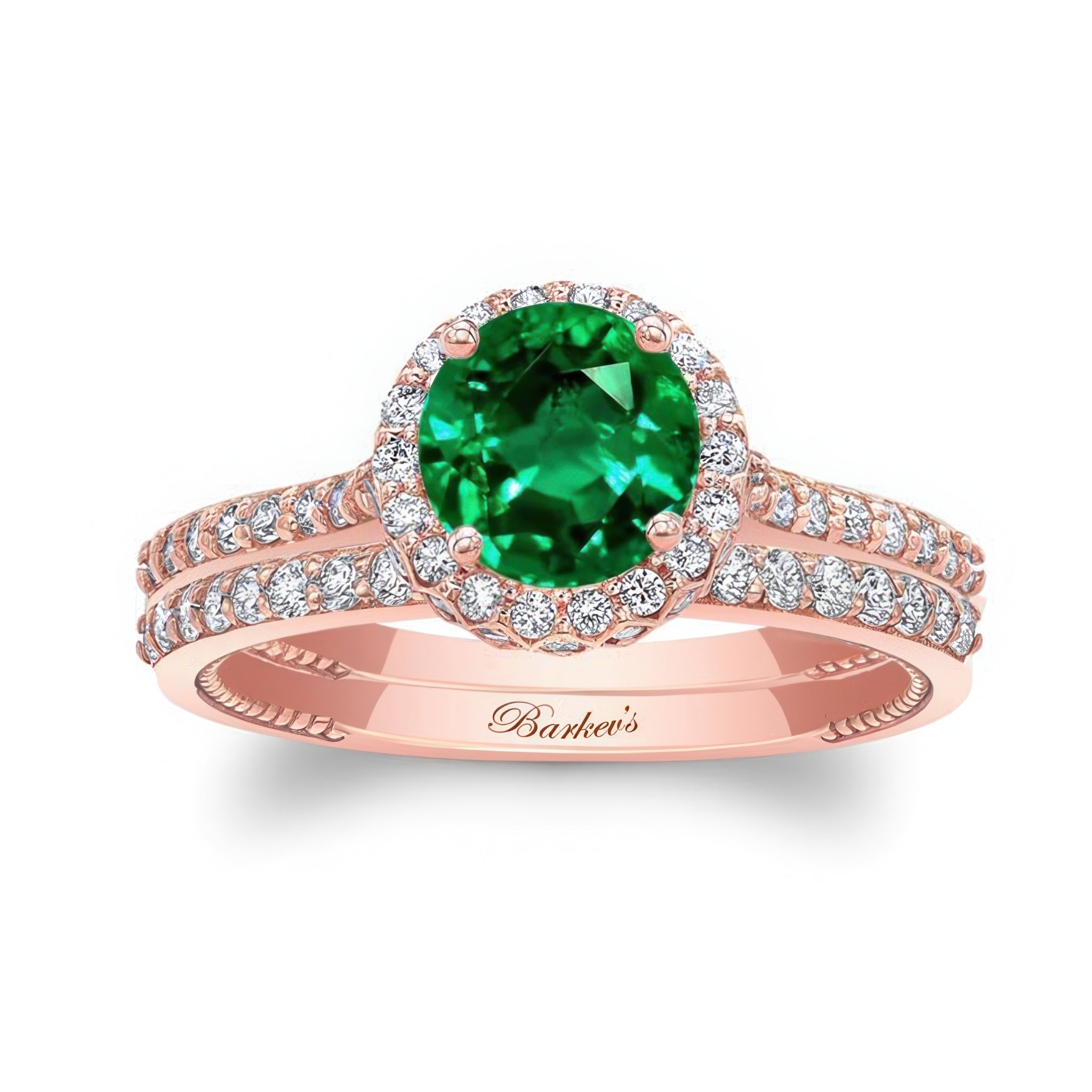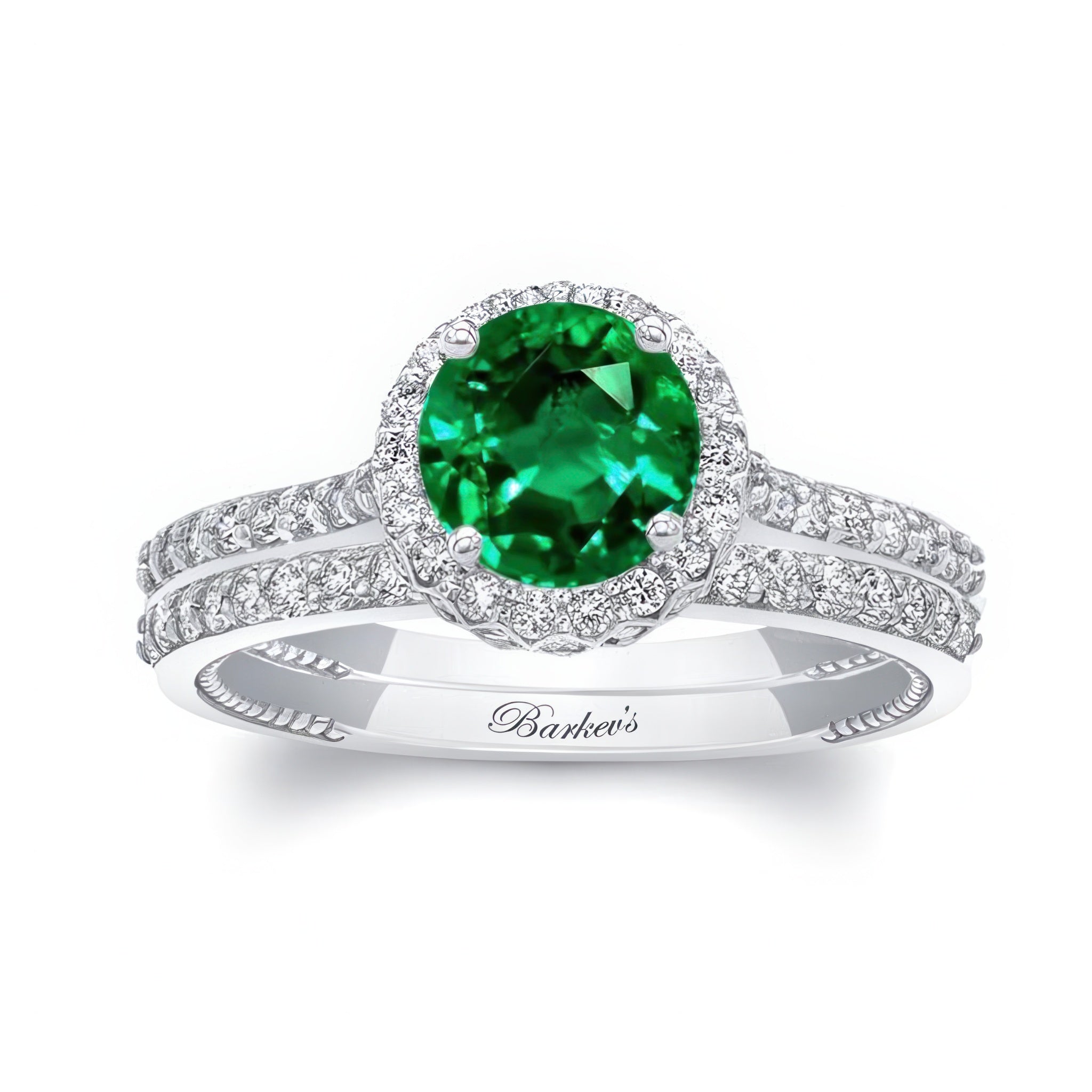 Round Halo Emerald And Diamond Wedding Set