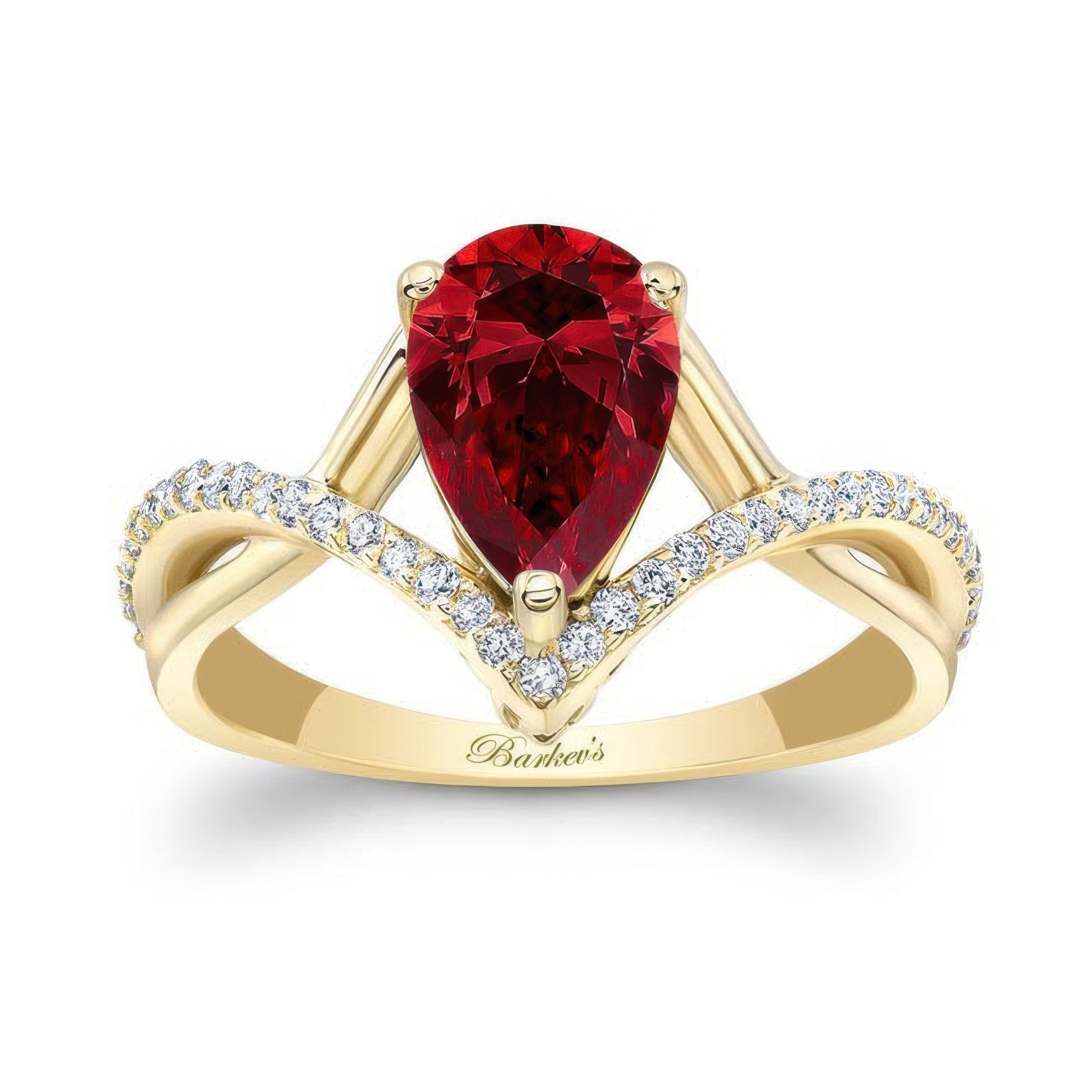 Turn up the heat with the Unique Pear Shaped Ruby And Diamond Ring, a passionate celebration of love and luxury. The fiery pear-shaped ruby center shines with vivid color and remarkable clarity, enhanced by a twisted band adorned with glittering diamonds that dance with every movement. A shared prong setting ensures the ring sparkles brilliantly while remaining comfortable for daily wear.