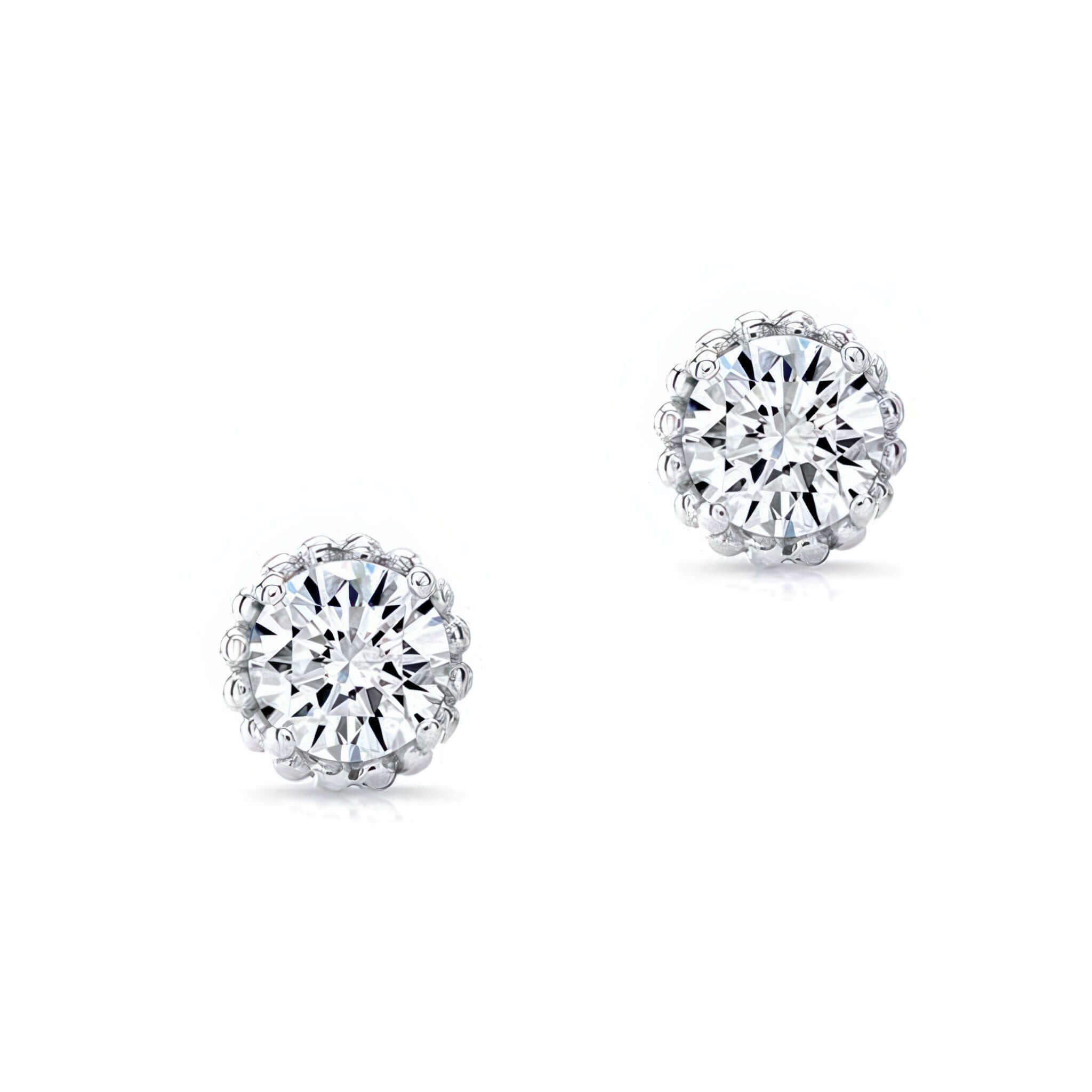 These 1.00ct. diamond studs feature prong set round centers on each side with dainty scrollwork on the gallery and secured comfortably with friction backs.
