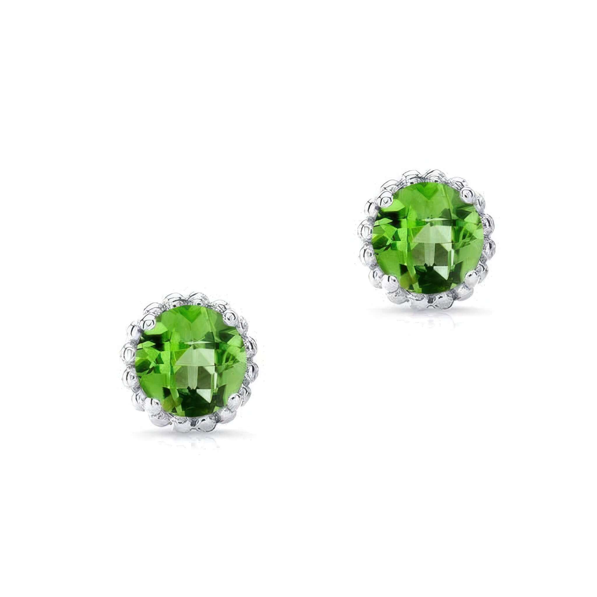 These 1.00ct. peridot studs feature prong set round centers on each side with dainty scrollwork on the gallery and secured comfortably with friction backs.
