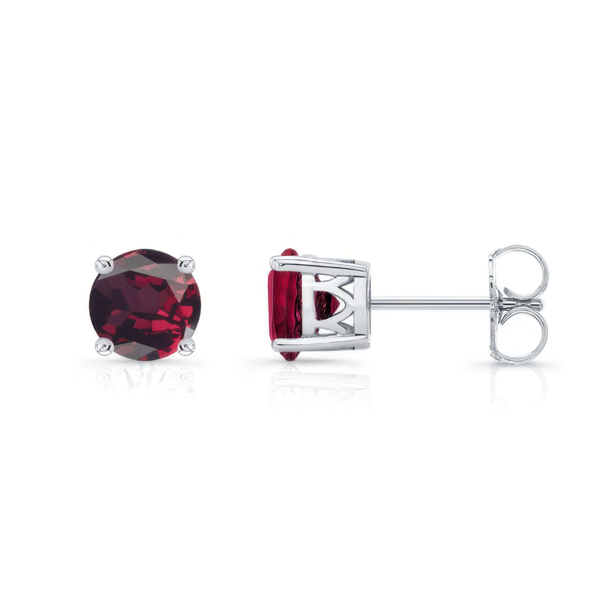 These 1 carat garnet studs feature prong set round centers on each side with dainty scrollwork on the gallery and secured comfortably with friction backs.