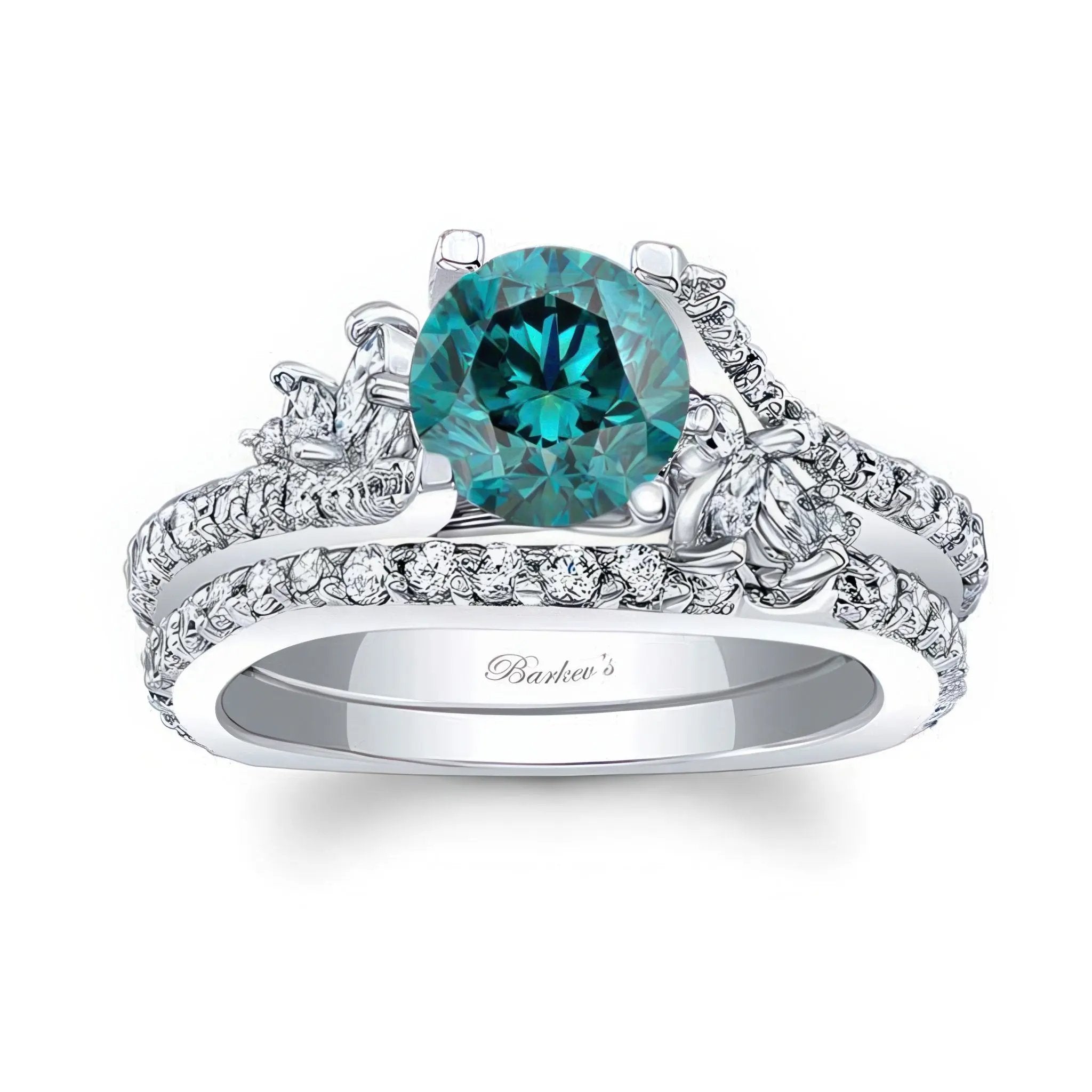 1 Carat Round Blue And White Diamond Bridal Set