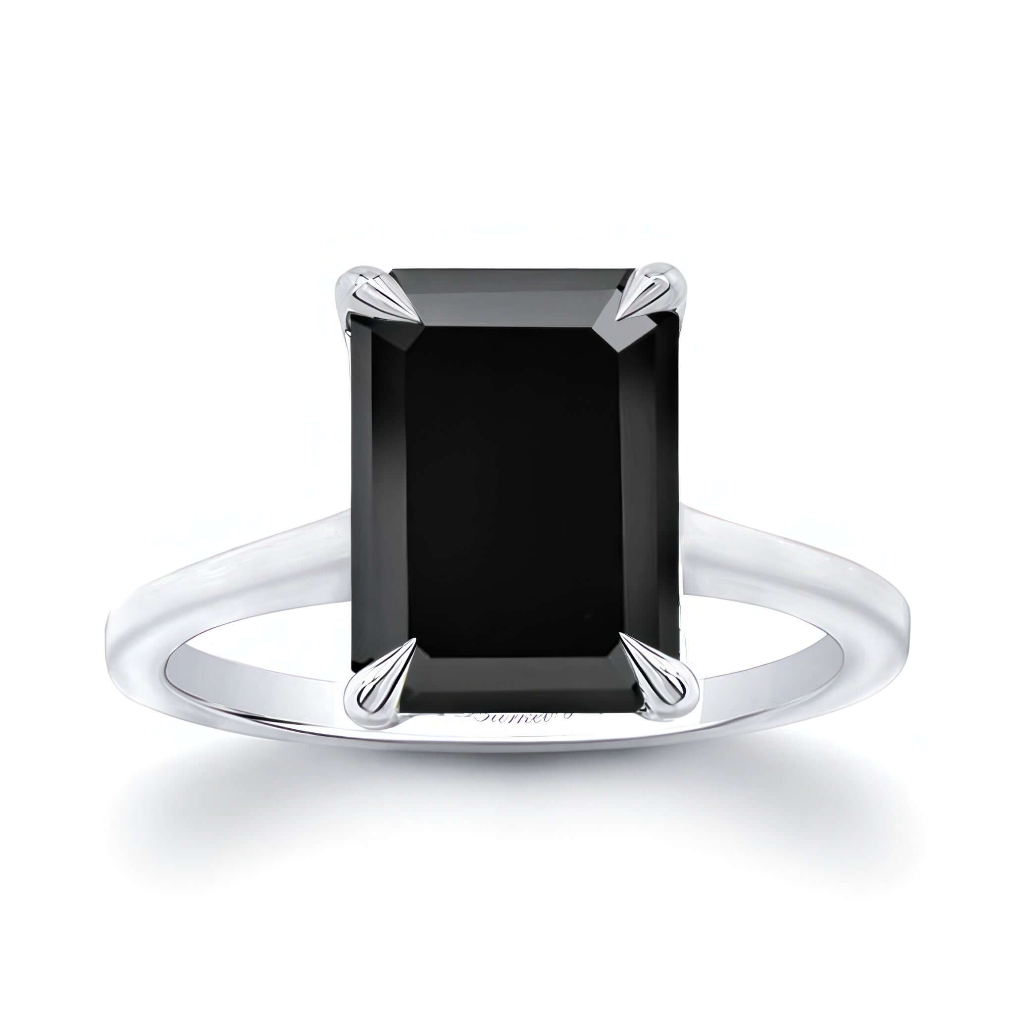 2 Carat Emerald Cut Black Diamond Solitaire Engagement Ring