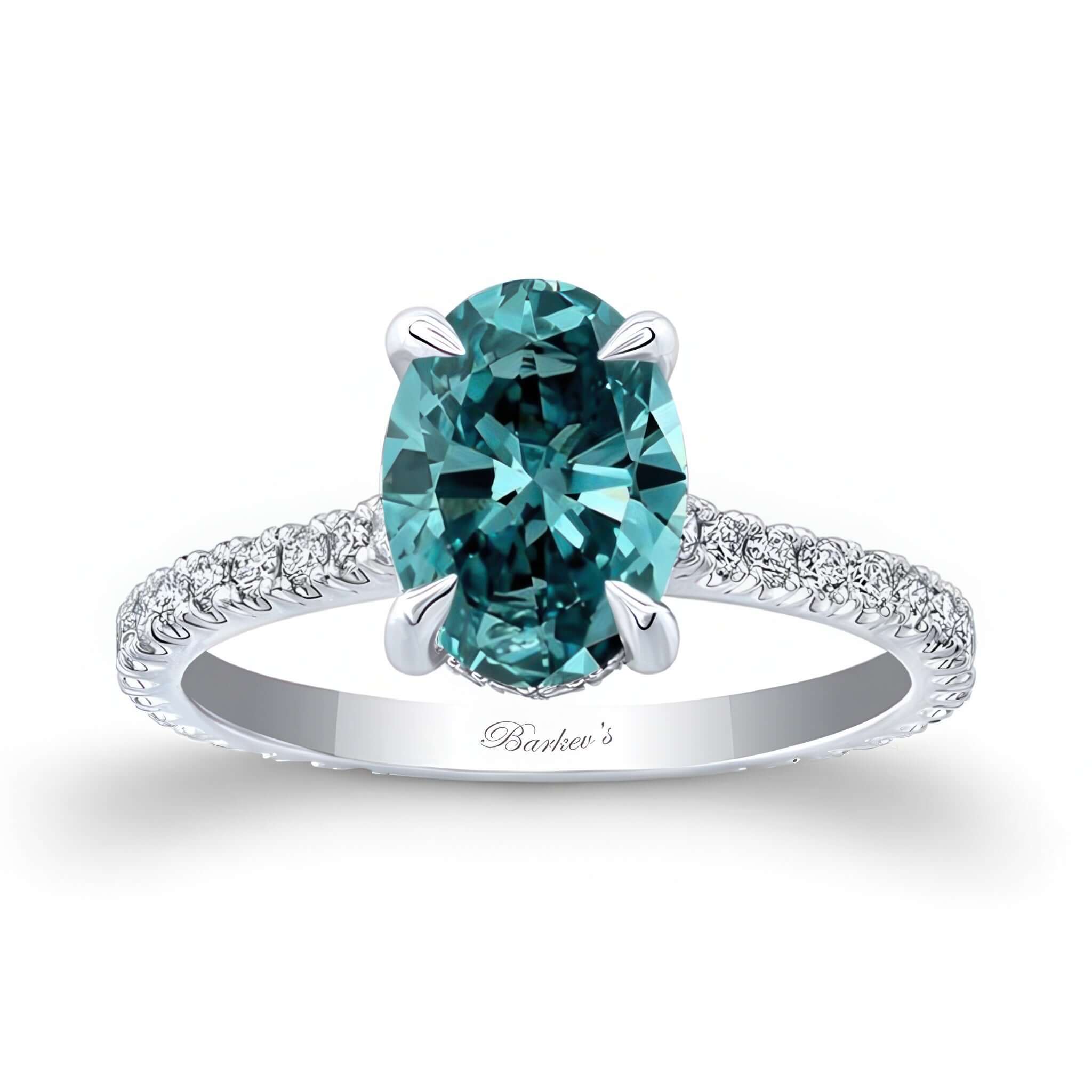 2 Carat Oval Blue And White Diamond Engagement Ring With Hidden Halo