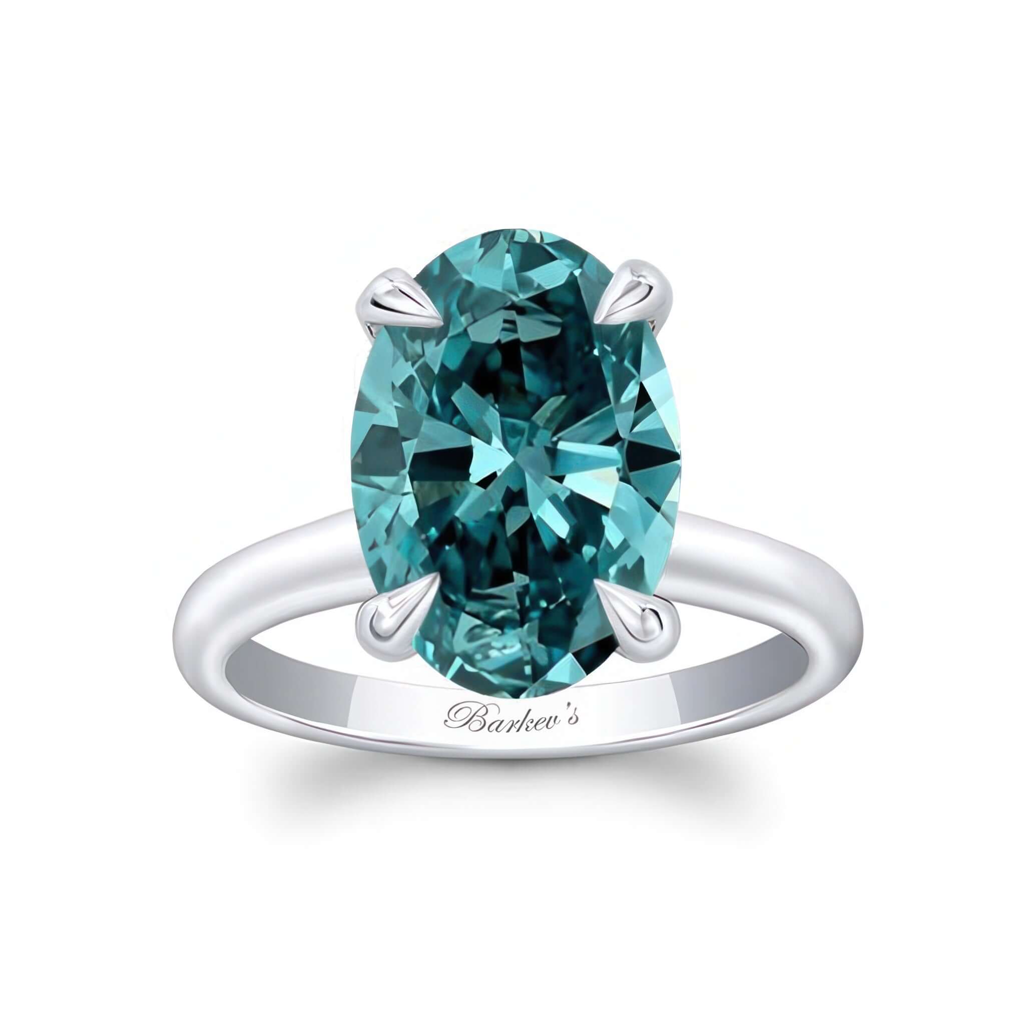 A beautiful 4 carat oval blue diamond solitaire ring featuring a simple design with a large center for a bold statement.