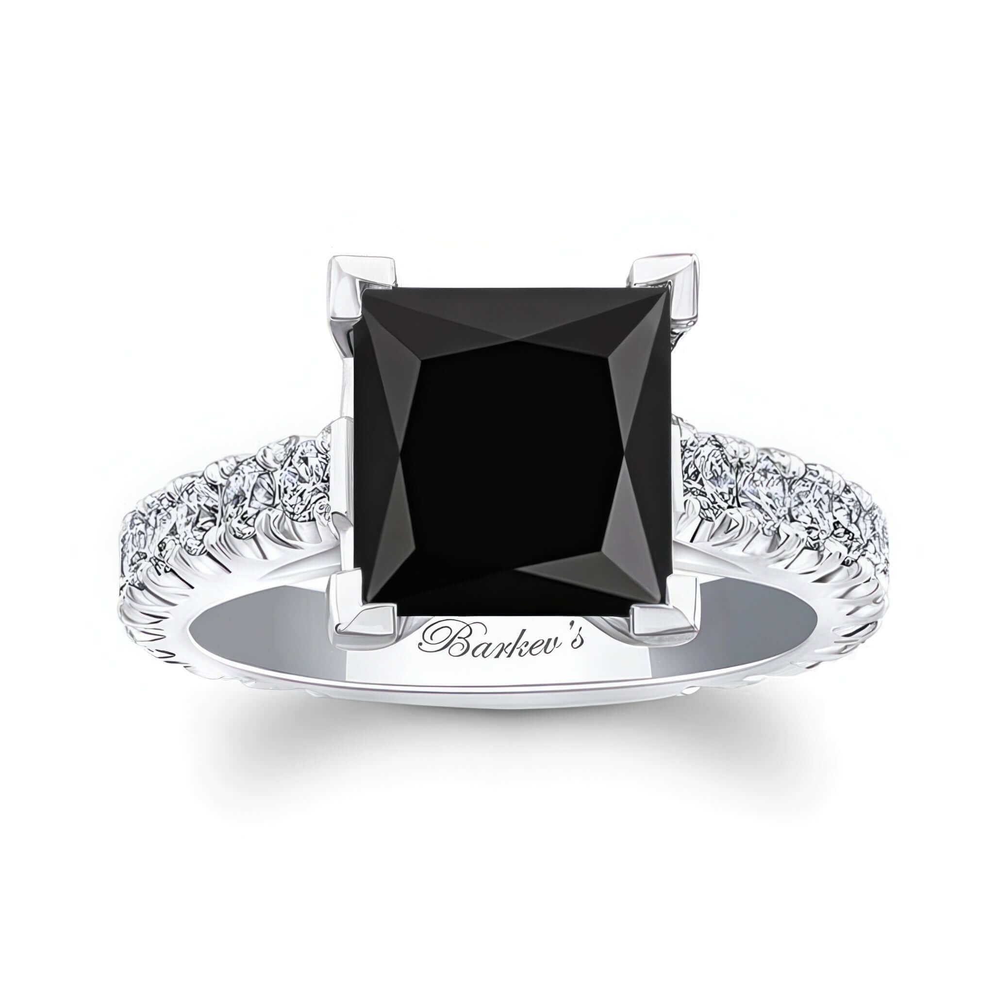 A Glamorous 4 carat princess cut black diamond ring featuring a stunning large center with a river of side diamonds flowing on the shank for a show stopping look.