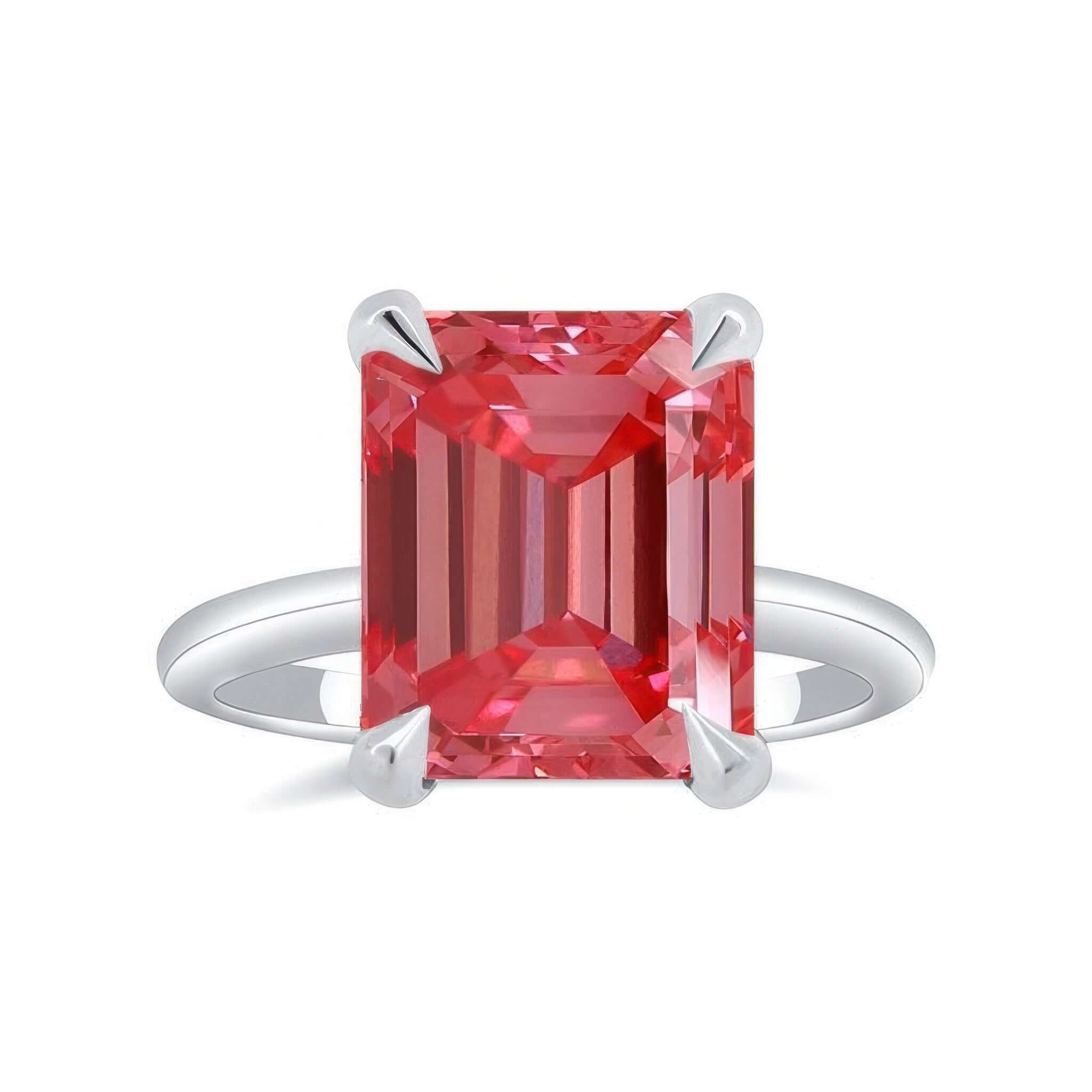 5 Carat Emerald Cut Lab Pink Diamond Ring