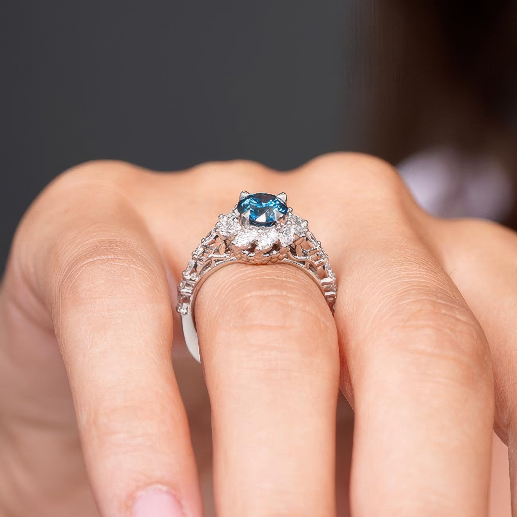 Blue And White Diamond Sunflower Engagement Ring