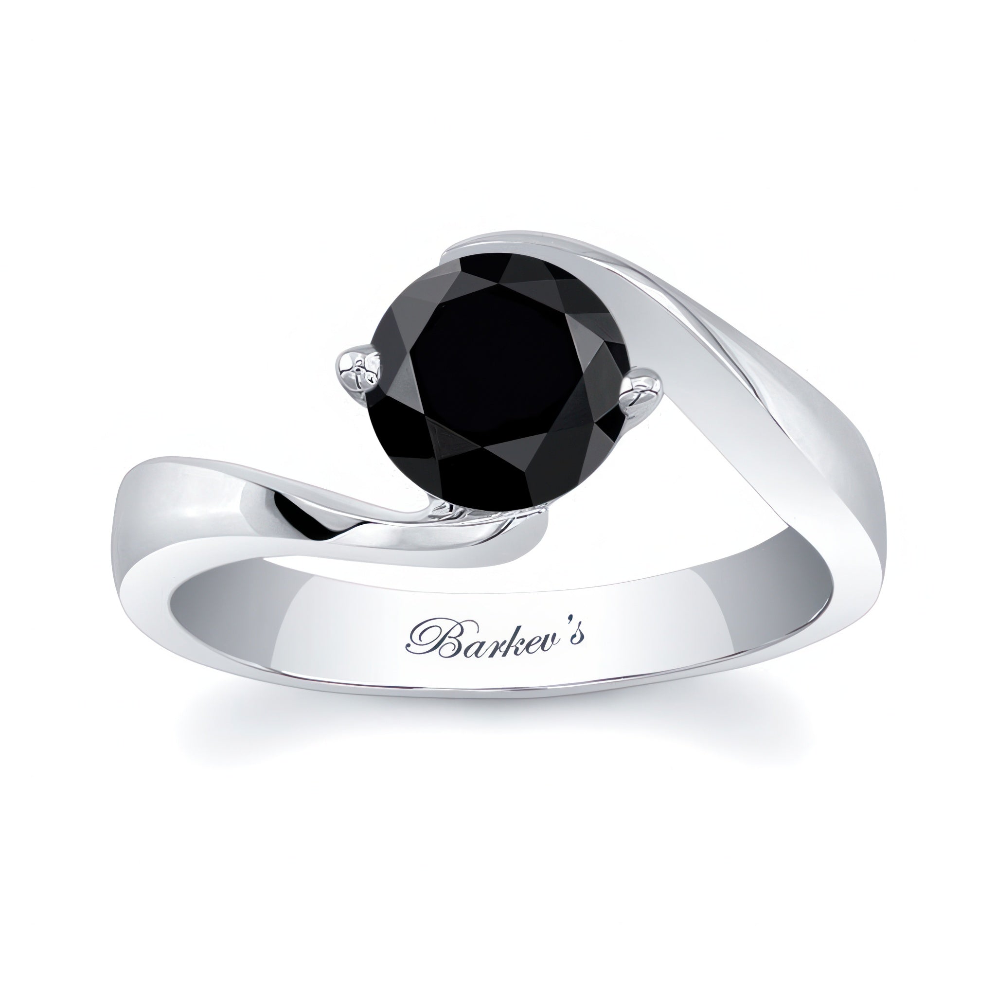 This contemporary black and white diamond solitaire ring features a half channel, half prong set center with a swirling shank for a look that is nothing short of stunning!