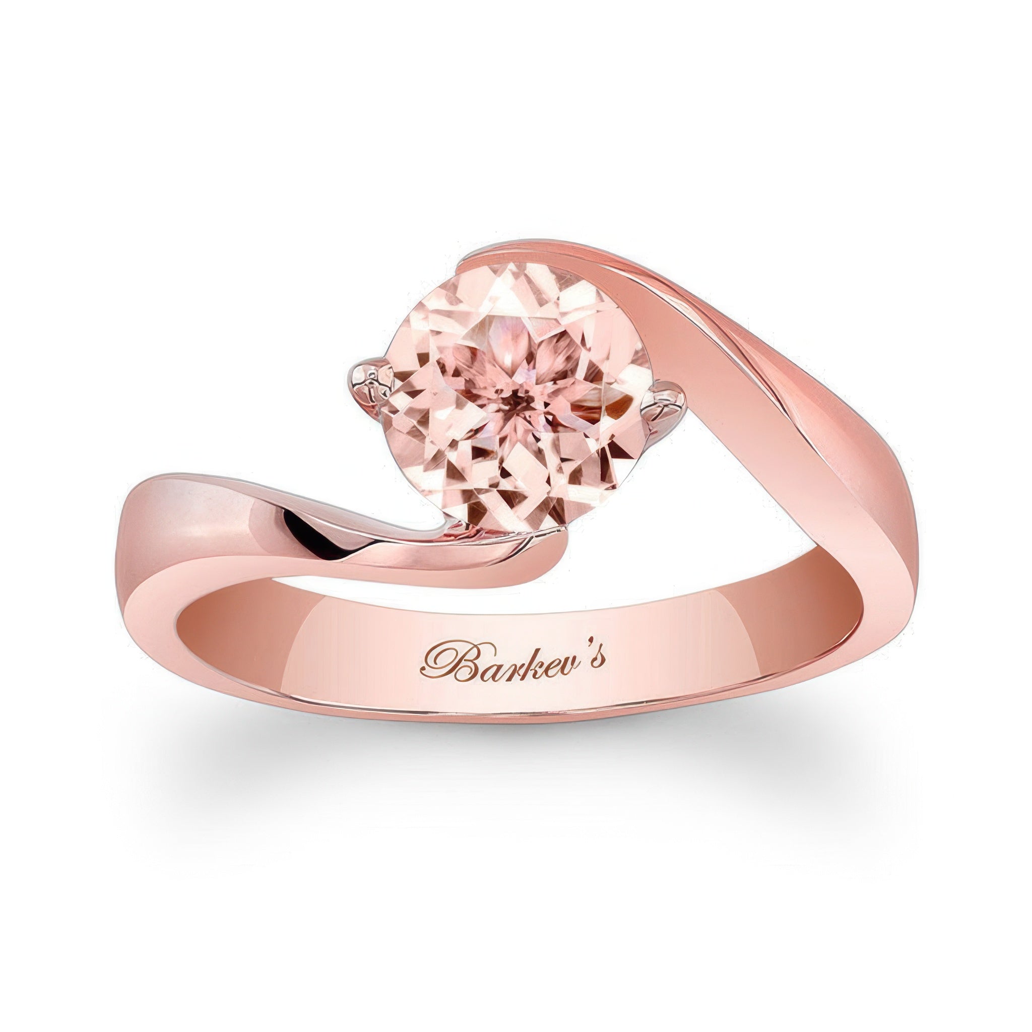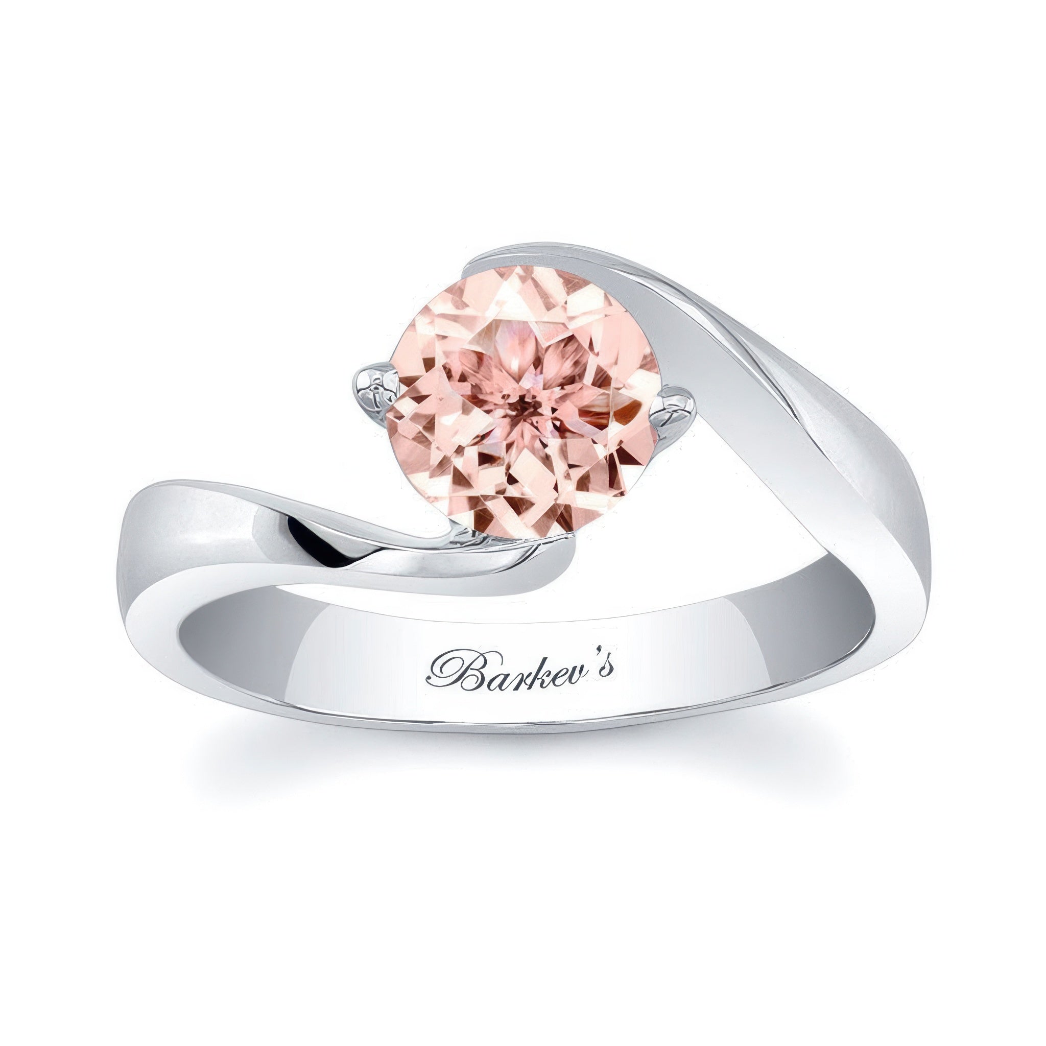This contemporary morganite solitaire ring features a half channel, half prong set center with a swirling shank for a look that is nothing short of stunning!